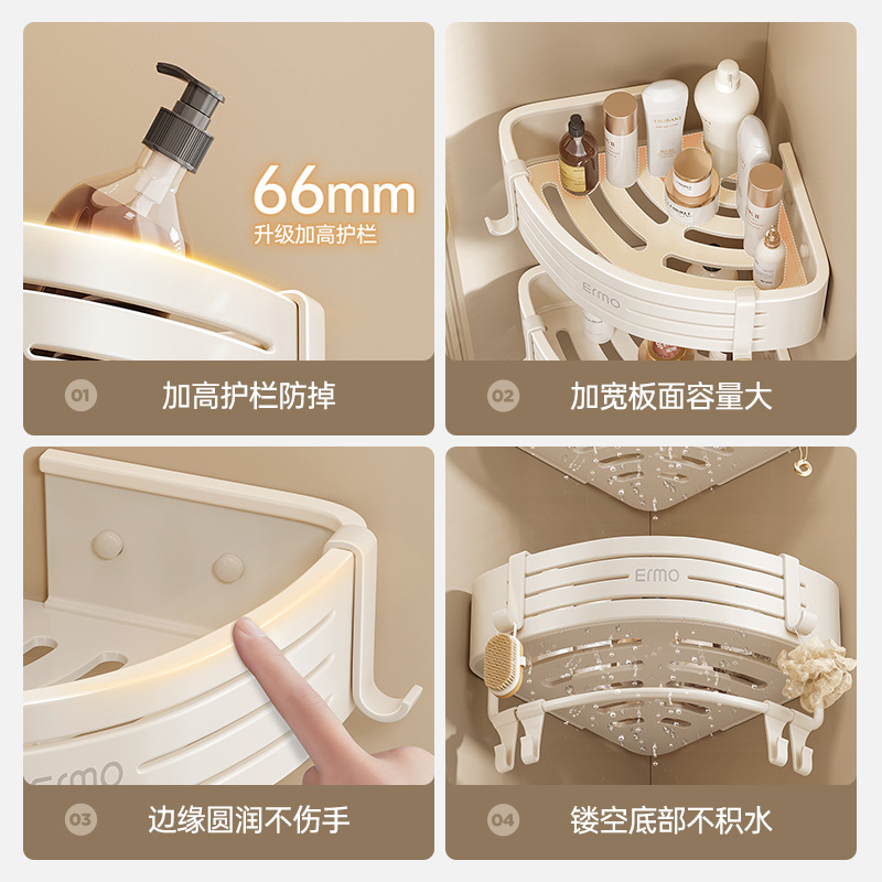 Cream Style Bathroom Shelf Triangle Punch-free Bathroom Shelf Storage Rack Bathroom Corner Toilet Shower