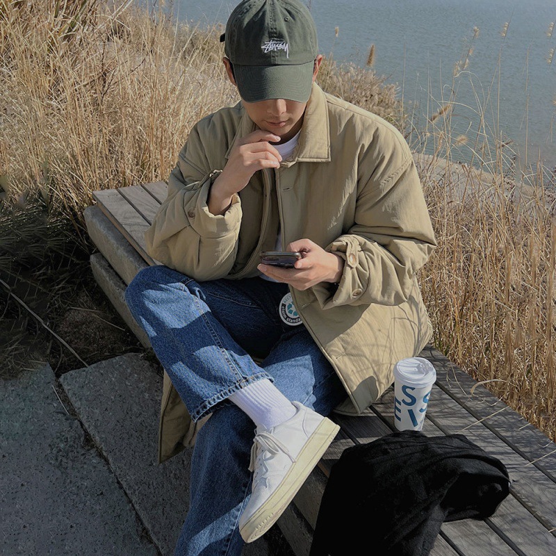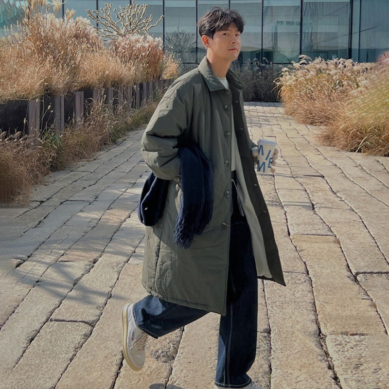 MYQKorean Mid-length Cotton Coat Men's Winter Warm Lapel Coat Cityboy Thickened Loose Cotton Windbreaker