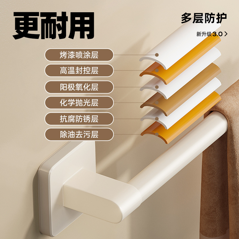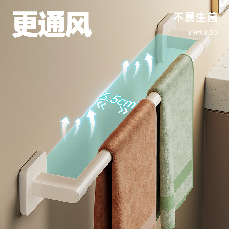 Towel Rack Punch-free Toilet Wall-mounted Bathroom Towel Rod Rack Toilet Storage Rack Cream