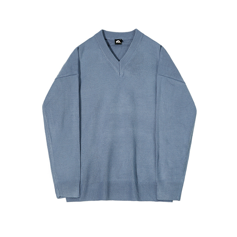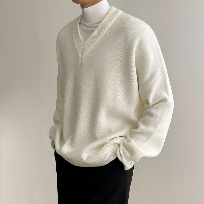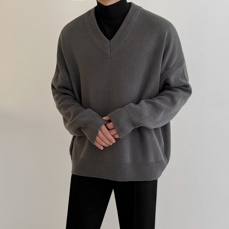 MYQSolid Color V-neck Sweater Men's Autumn And Winter Thickened Sweater Korean Styley Loose Lazy Style Bottoming Shirt