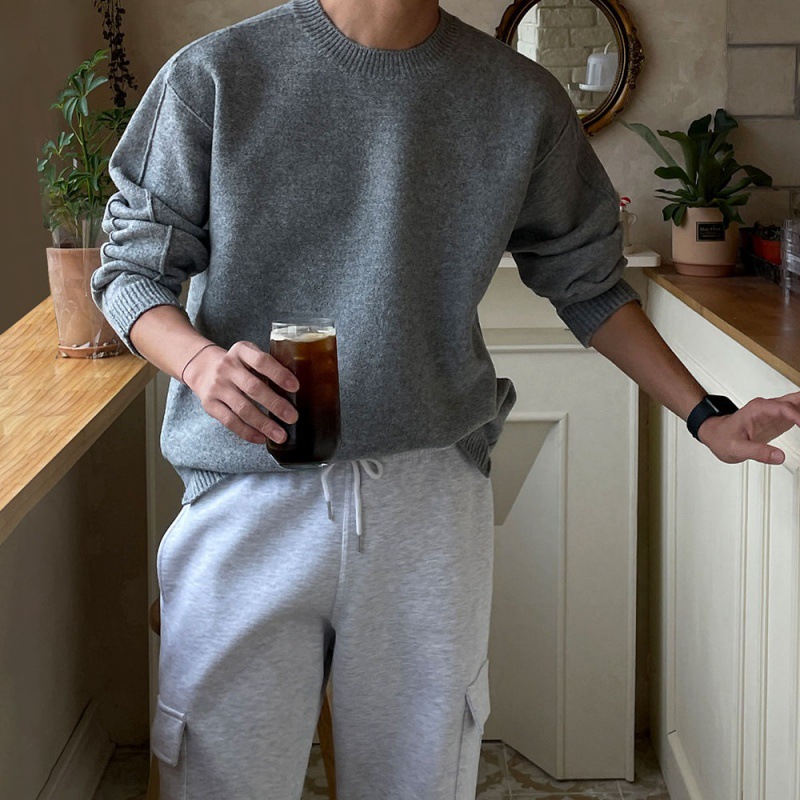 MYQHigh-end Solid Color Sweater Men's Korean Styley Lazy Sweater Sweater Autumn And Winter Warm Inner Wear
