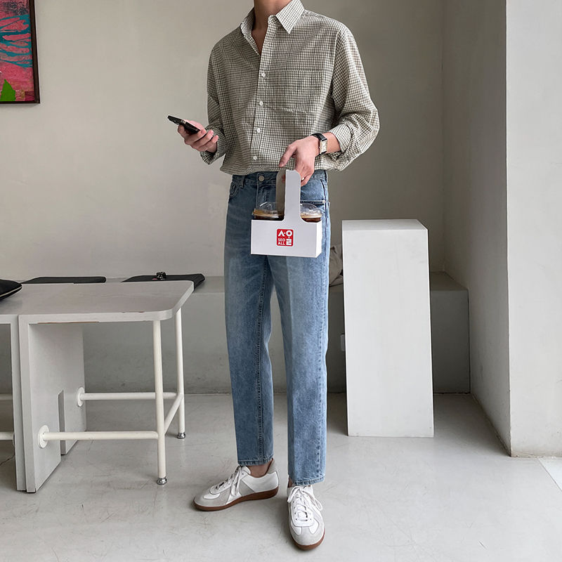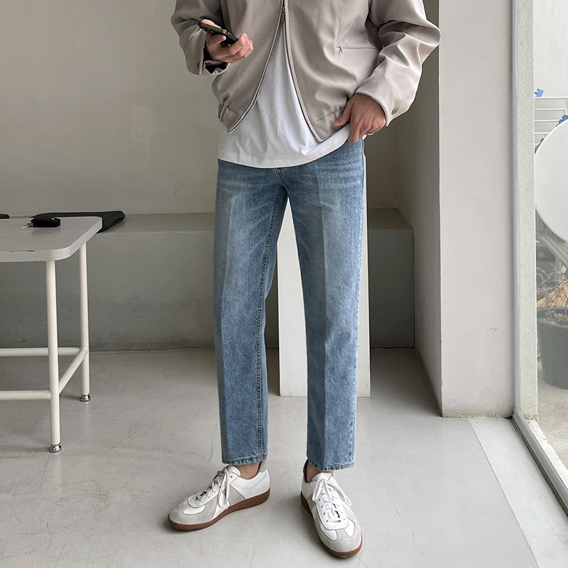 MYQStraight Slim Fit Nine-point Jeans For Men In Spring,Retro,Versatile,Korean Style High Street Washed Nine-point Casual Pants