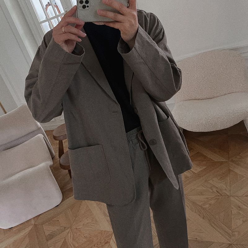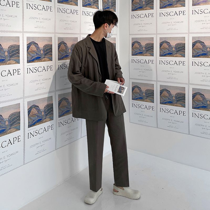 MYQMen's Casual Blazer Spring Korean Styley Loose Straight Trousers Two-piece Suit Suit