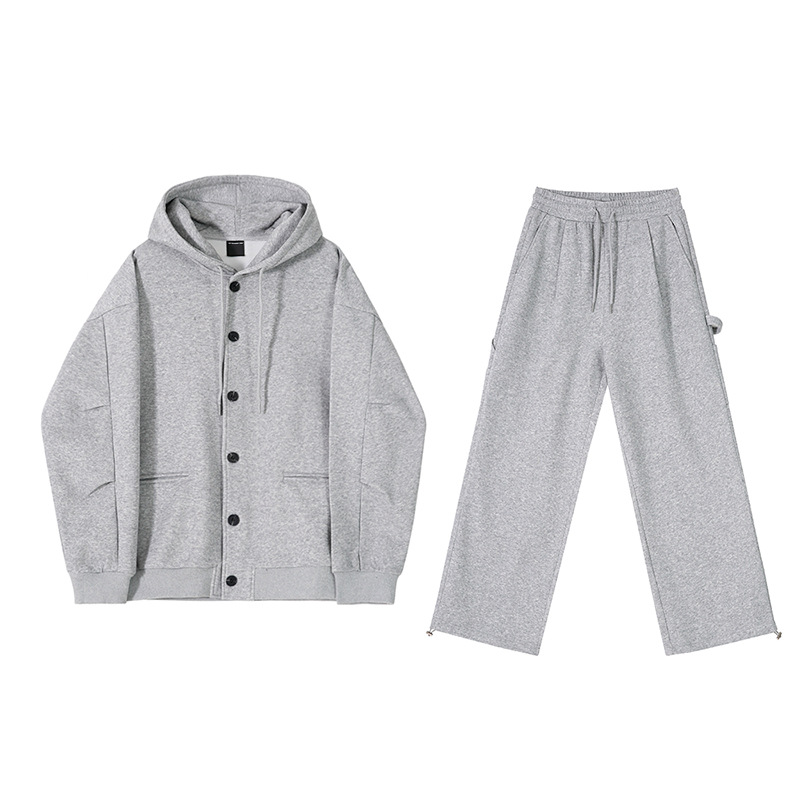 MYQHooded Sweatshirt Cardigan Jacket Men's Spring Wide-leg Casual Pants Two-piece Korean Style Casual Sports Suit