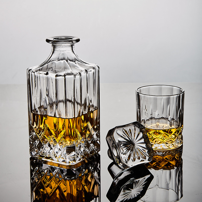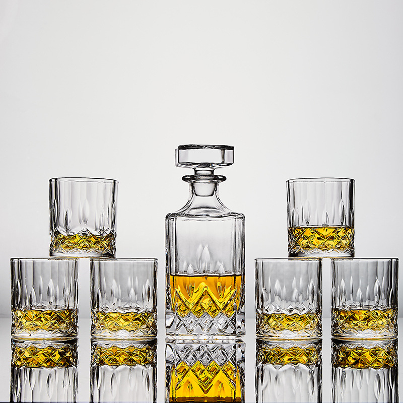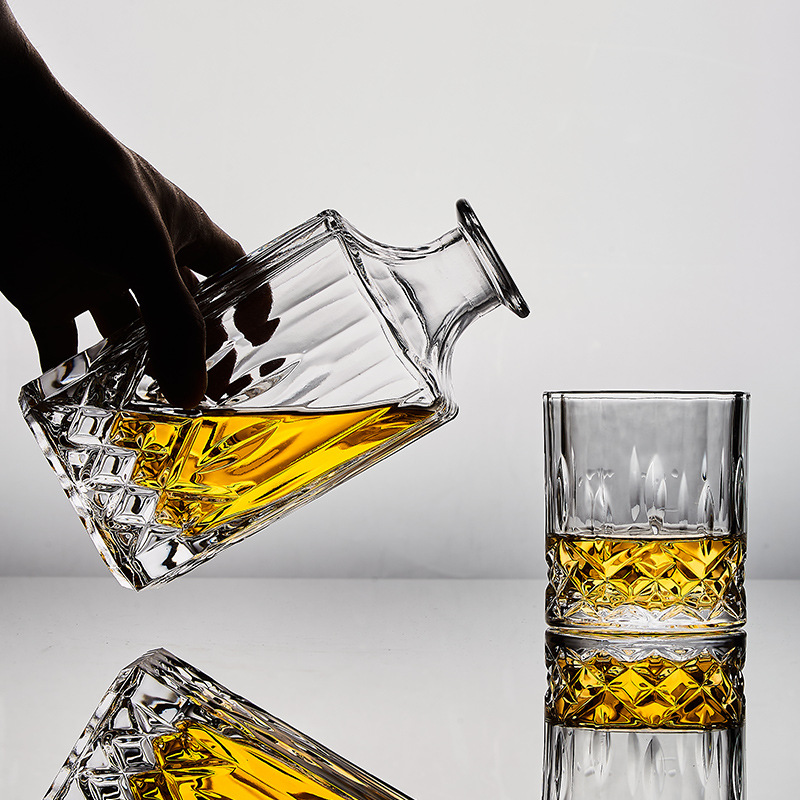 [Safe Packaging]European Style Gold Diamond Pattern Crystal Whiskey Glass Bottle Brandy Wine Set