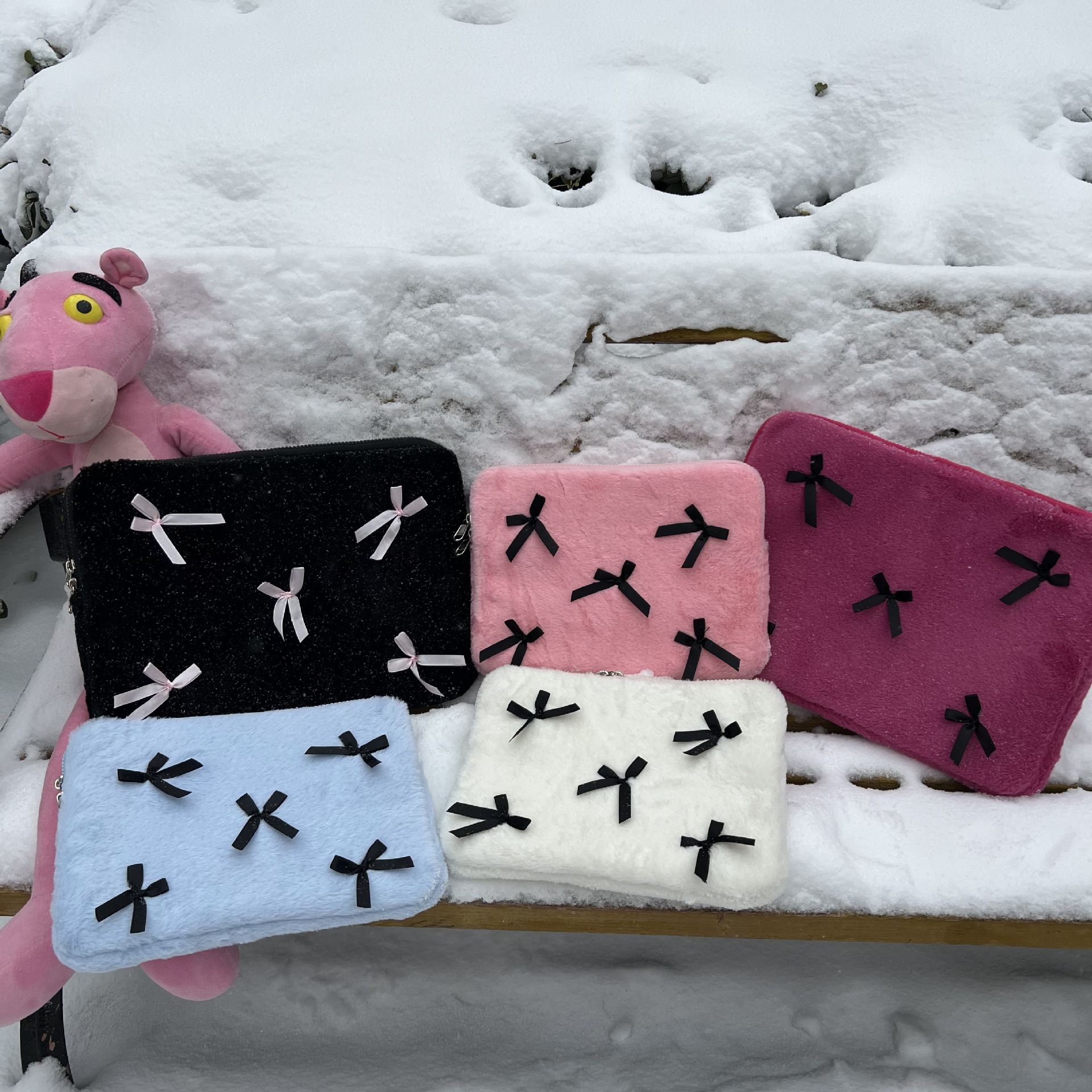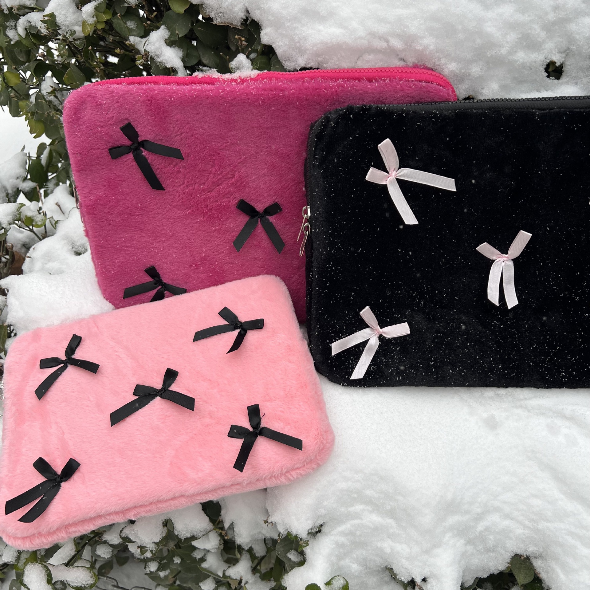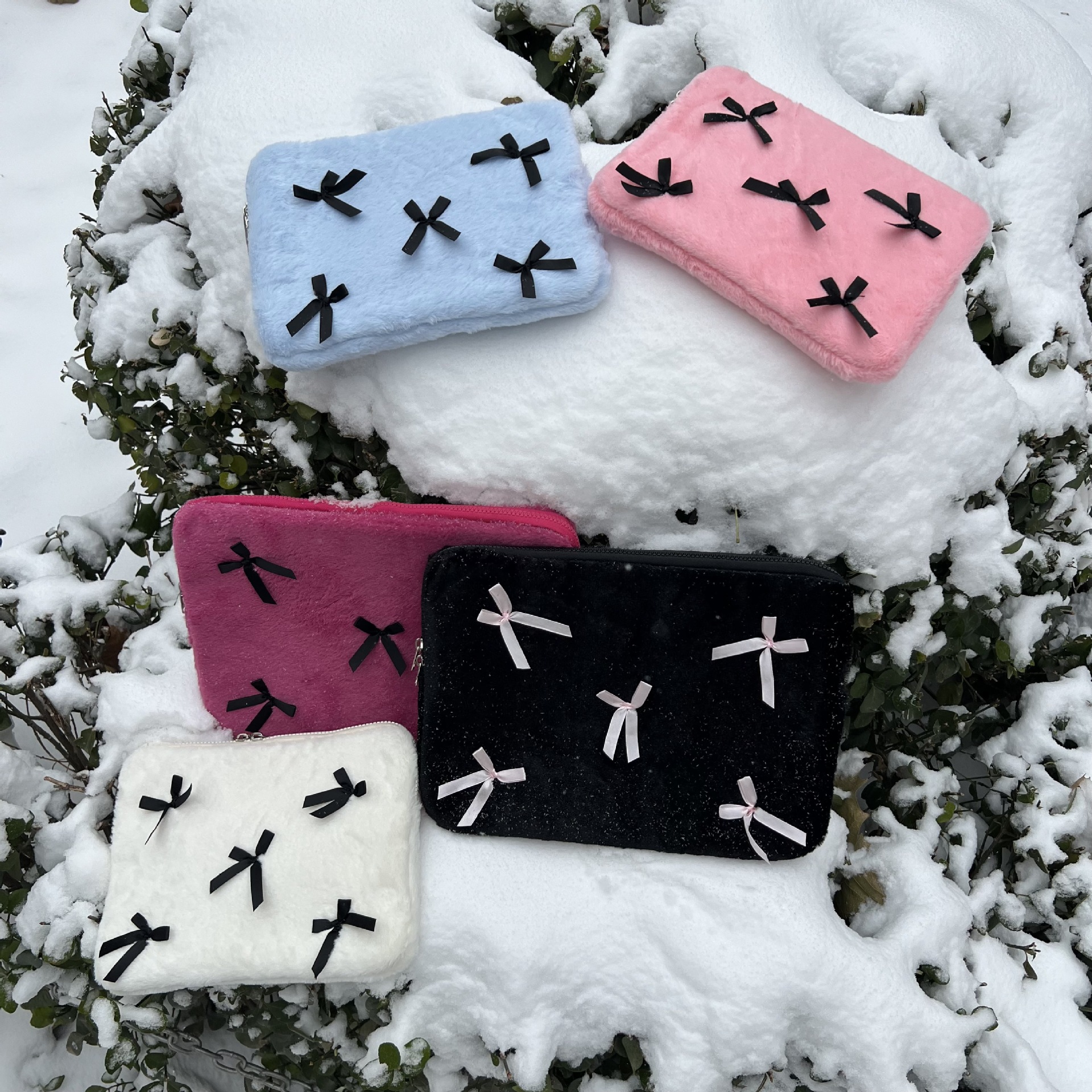 Korean Cute Bow Plush Computer Storage Bag11/13/15 Inch Laptop Liner Bag For Women