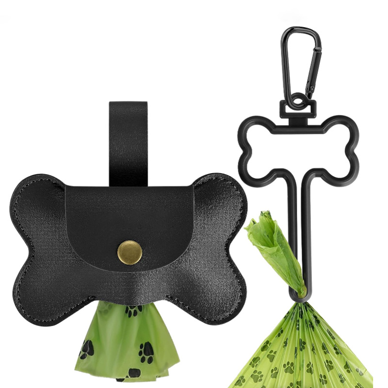 Bone Shape Pet Poop Bag Outdoor Pendant Dog Poop Bag Leather Cover Replaceable Poop Picker