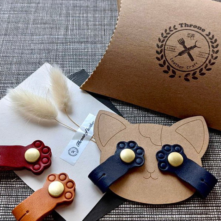 Ready Stock Data Cable Storage Cute Cat Paw Pattern Cable Winder Mobile Phone Charging Cable Organizer PULeather Cable Management Buckle