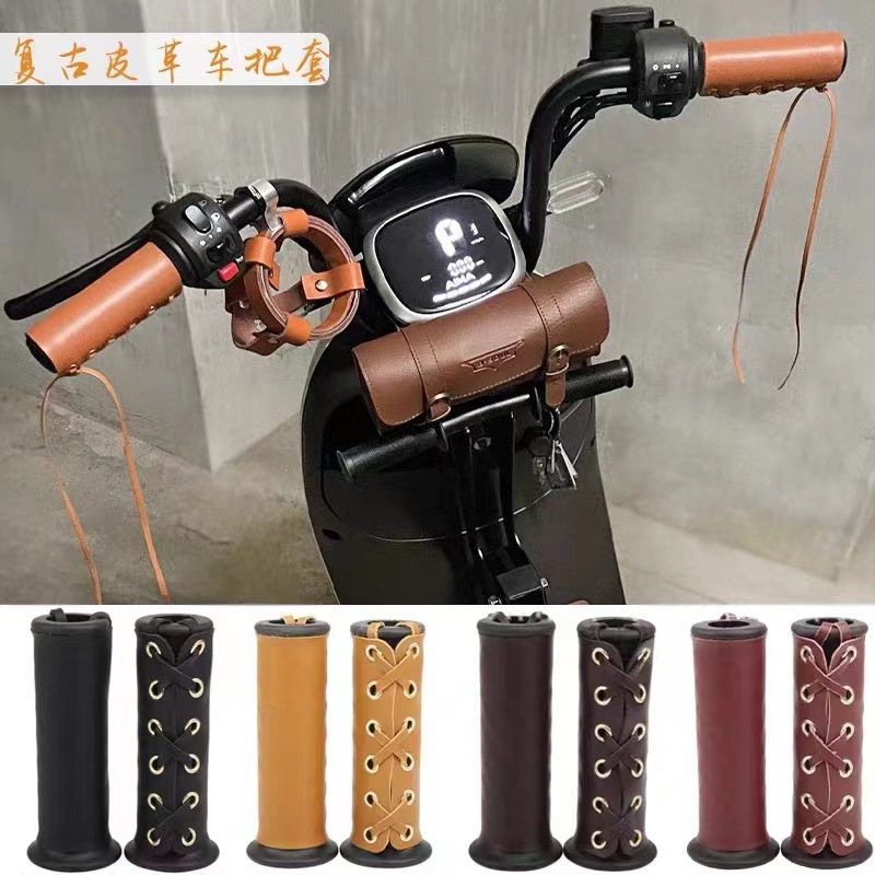 Electric Rider Grip Covers Retro PULeather Motorcycle Modification Accessories Universal Mountain Bike Grip Covers