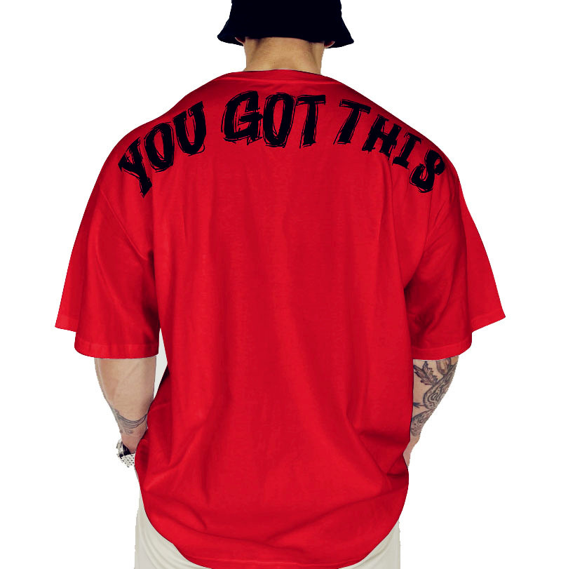 Muscular Men's Loose Sports Fitness T-shirt Men'sy Large Size Short-sleeved Pure Cotton Elastic Sweat-absorbent Training Clothes Half-sleeved