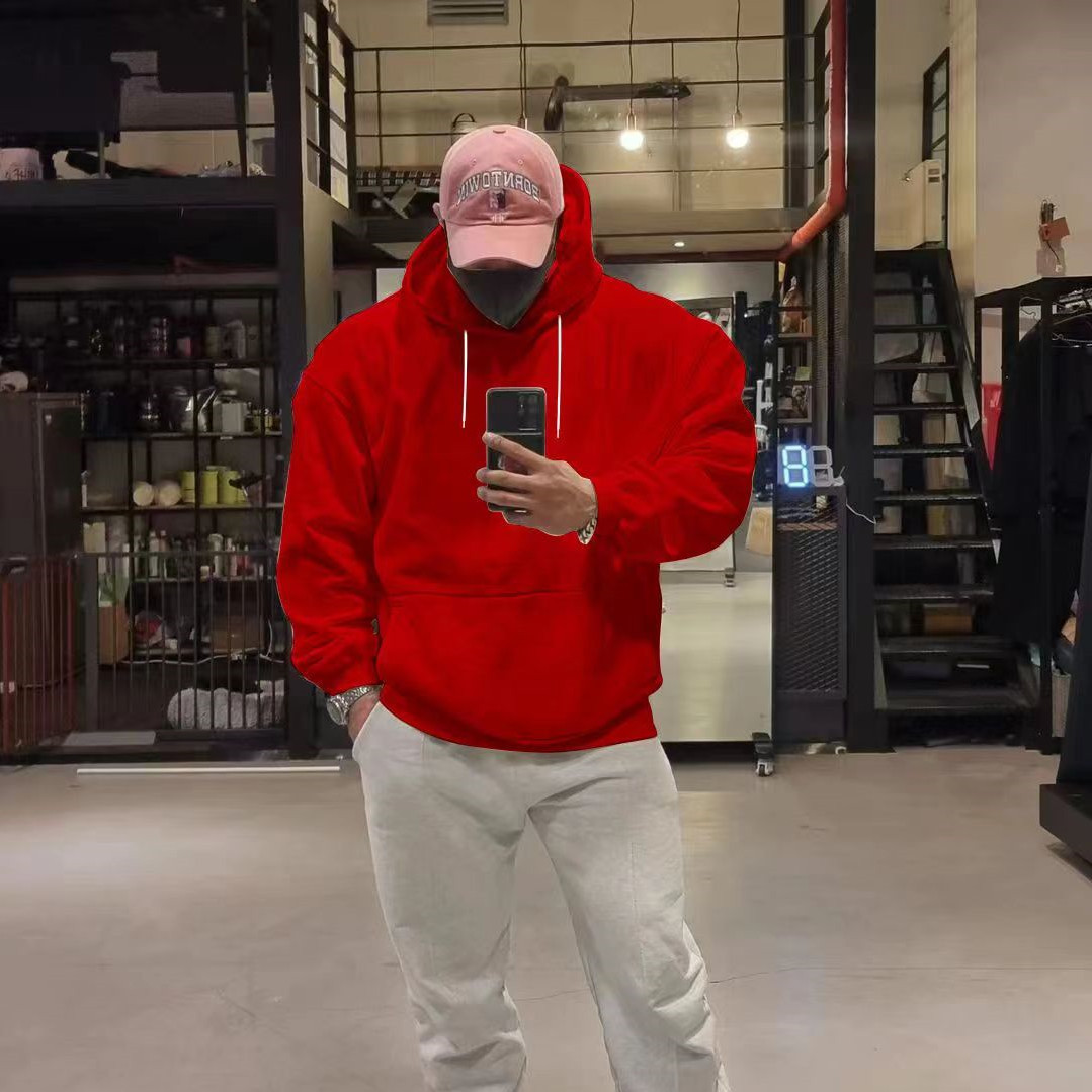 Muscle Fitness Sports Sweatshirt Men's Loose Solid Color Training Hoodie Running Casual Korean Styley Top