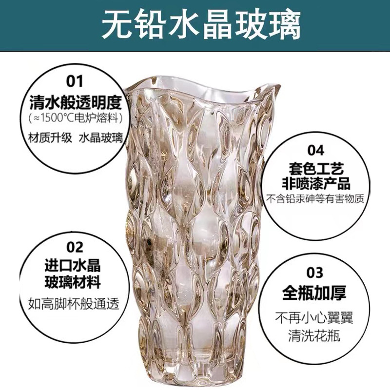 Vase Decoration Living Room Flower Arrangement Light Luxury Crystal Glass Style Nordic Rose Bedroom Internet Celebrity Water Decoration