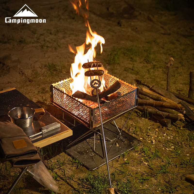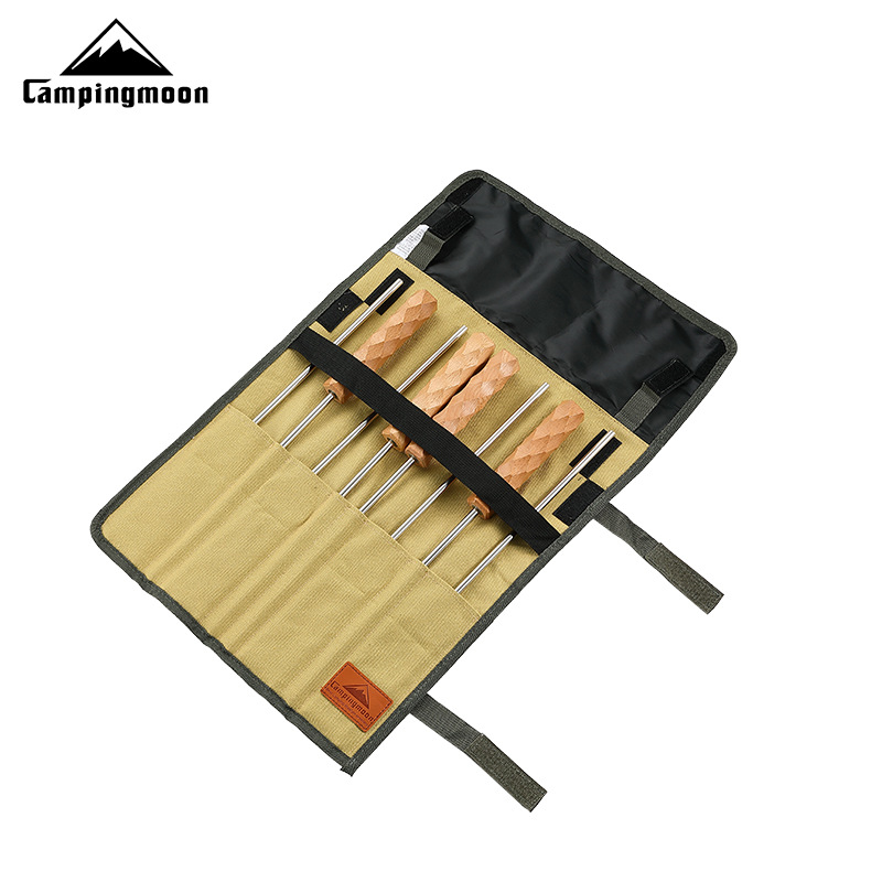 Komen MK-4 Camping Barbecue U-shaped Sausage Fork304 Stainless Steel Wooden Handle Anti-scalding Portable Removable Barbecue Barbecue Fork