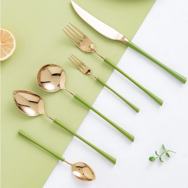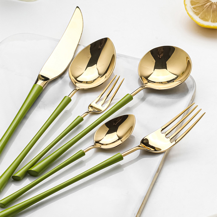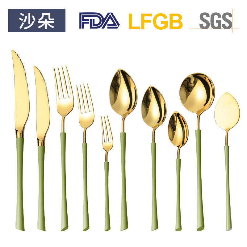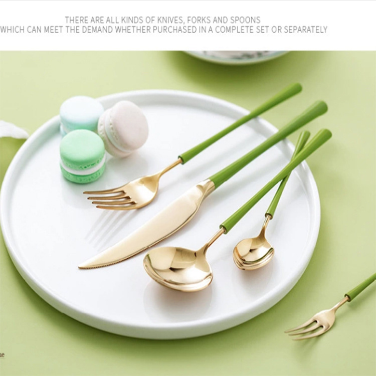 Shado Yading Avocado Green Knife,Fork And Spoon Set304 Stainless Steel High-Looking Home Western Food Tableware