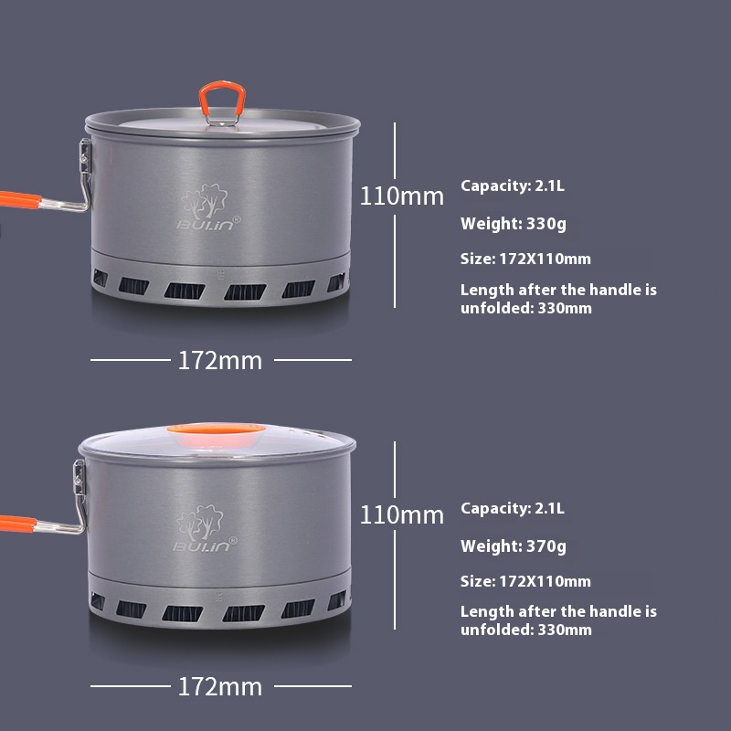 Bulin Outdoor Single Pot Portable Heat Collecting Pot S2500 Camping Pot Outdoor Picnic Pot Camping Large Heat Collecting Pot