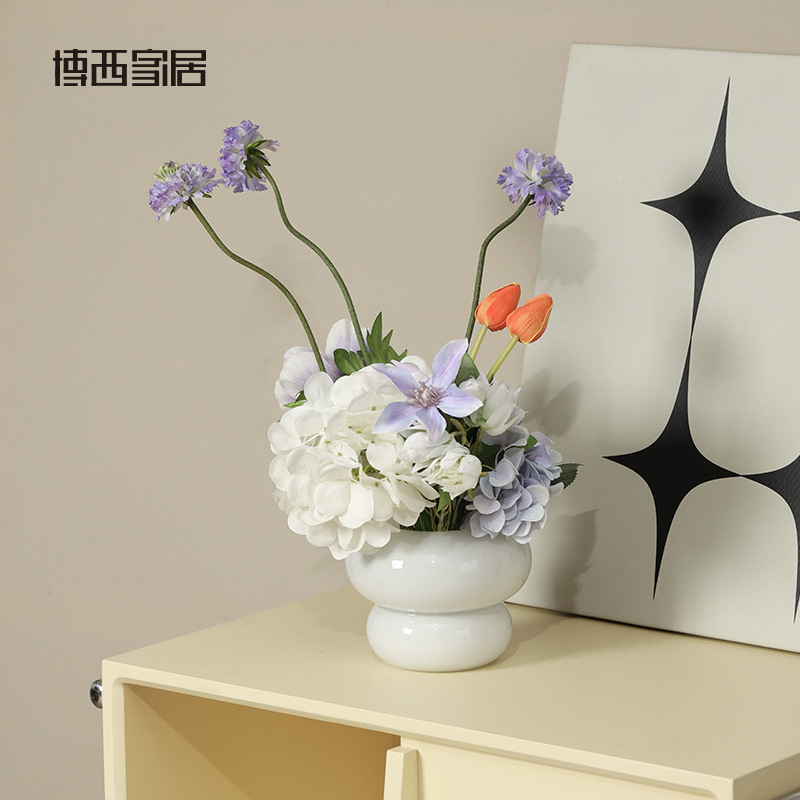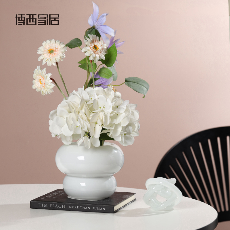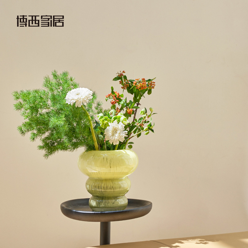 Bossi Home Simple Milkyellow Gourd-shaped Hydroponic Glass Vase Ornaments Home Model Room Decorations