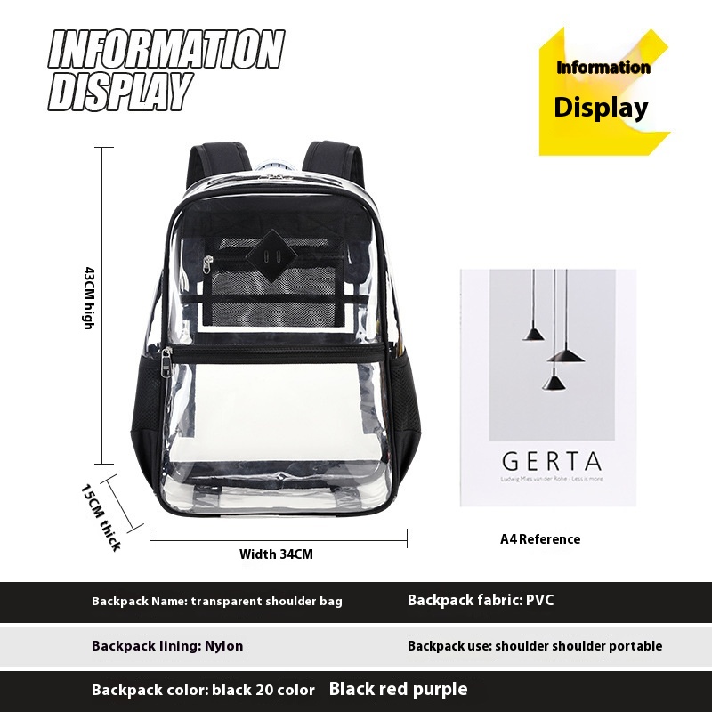 Transparent Backpack Waterproof Large-capacity Student Schoolbag Senior Grade