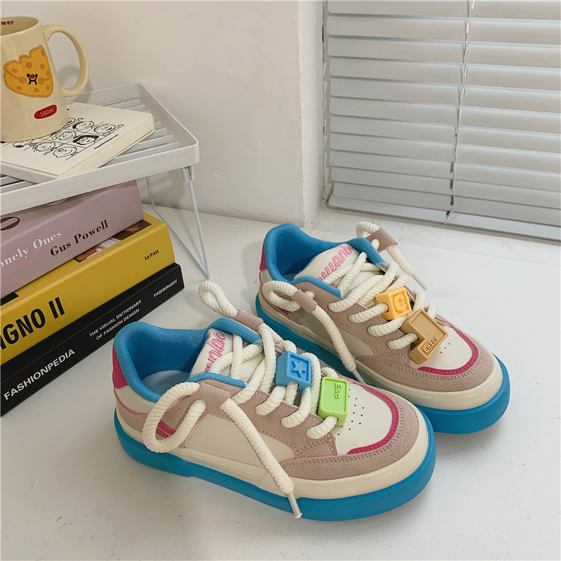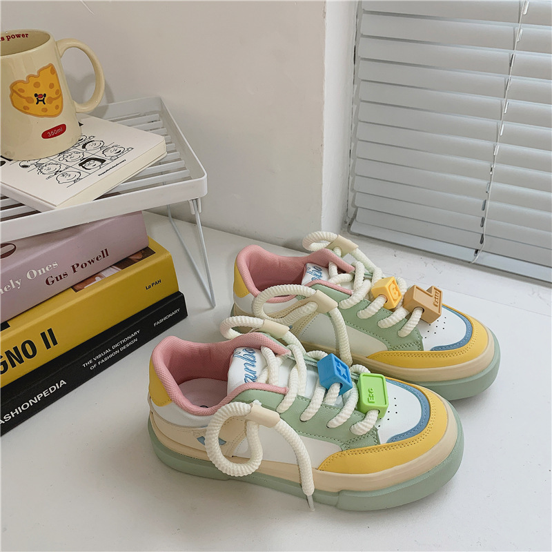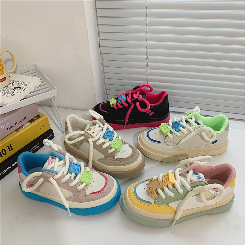 Autumn Flat Low-top Student Canvas Shoes Women's Leather Korean Version Color Matchingy Sneakers Sports And Casual Women's Shoes