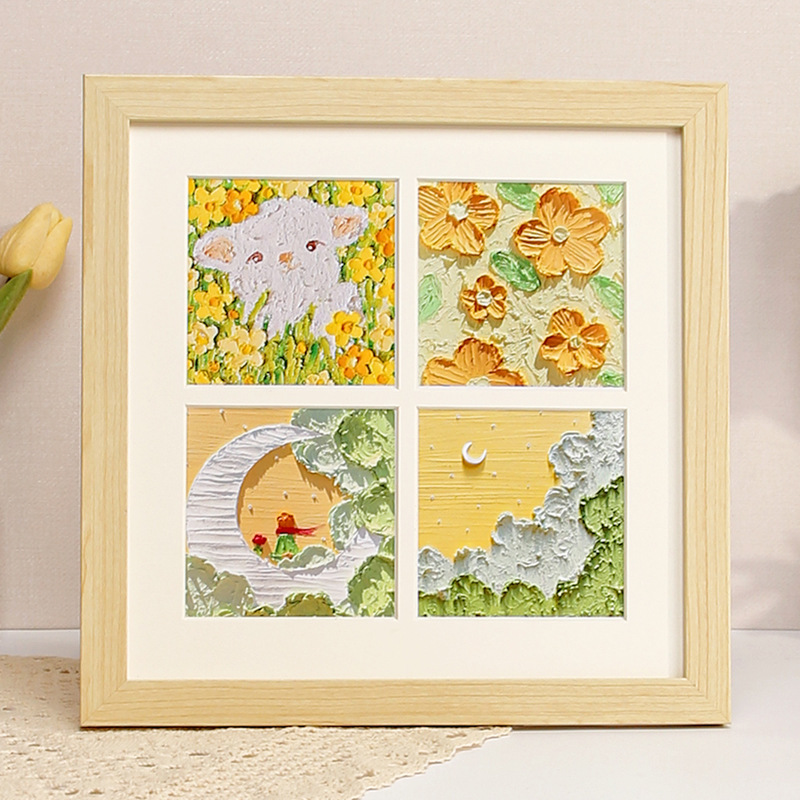 Oil Pastel Diy Picture Frame Four-square Grid Nine-square Grid Birthday Handmade Gift Framed Square Photo Frame Table Set