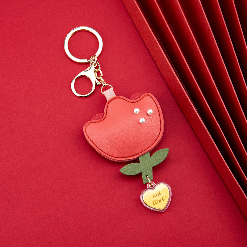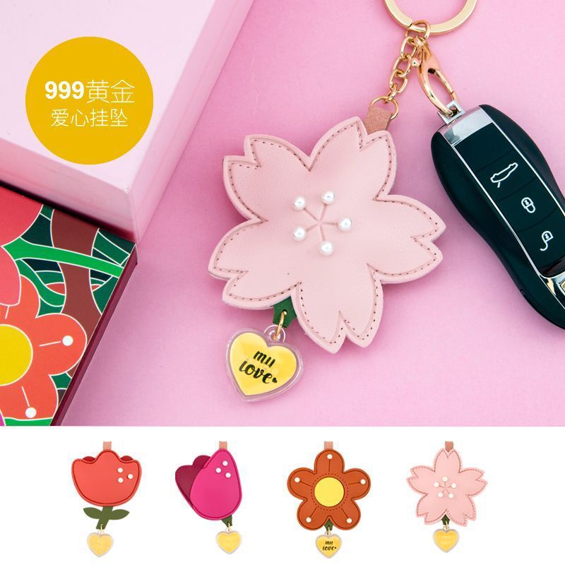 Eight Gateects Flower Key Chain Gold Tag Girl Bag Hanging Creative Gift Couple Valentine's Day Gift
