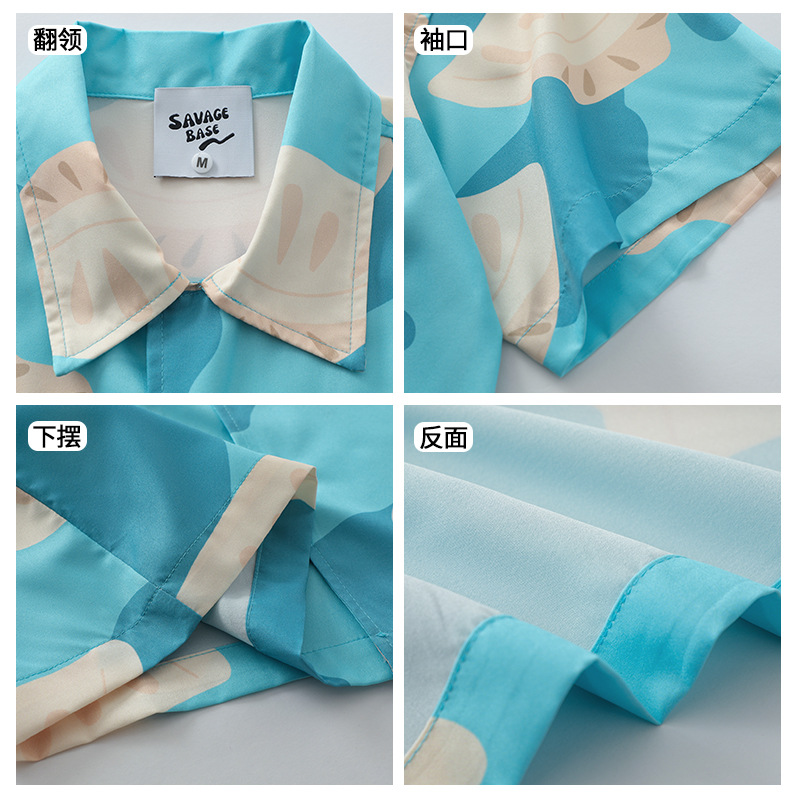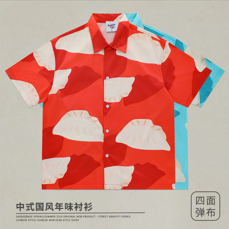 YBrand Chinese Year Style Cartoon Full Printed Shirts For Men And Women Summer Thin Casual Short-sleeved Hawaiian Shirts