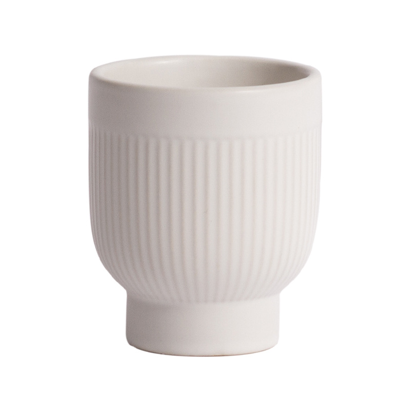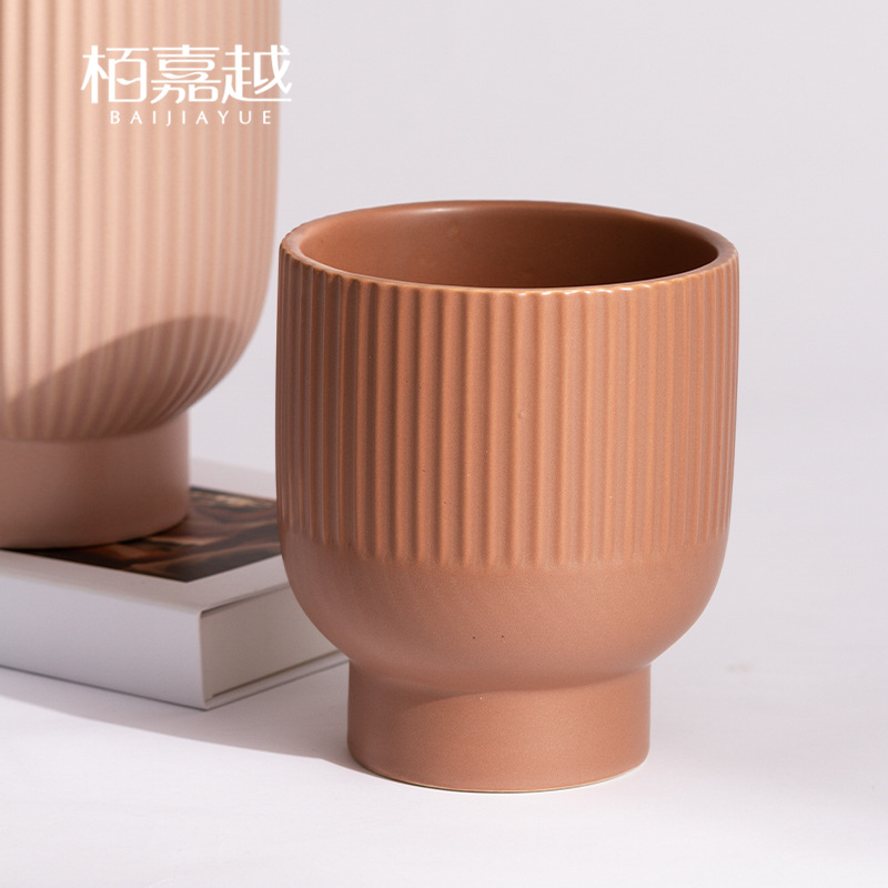 Nordic Simple Striped High-legged Ceramic Flower Pots Modern Earth-tone Green Plant Pots Succulent Desktop Home Flower Pots