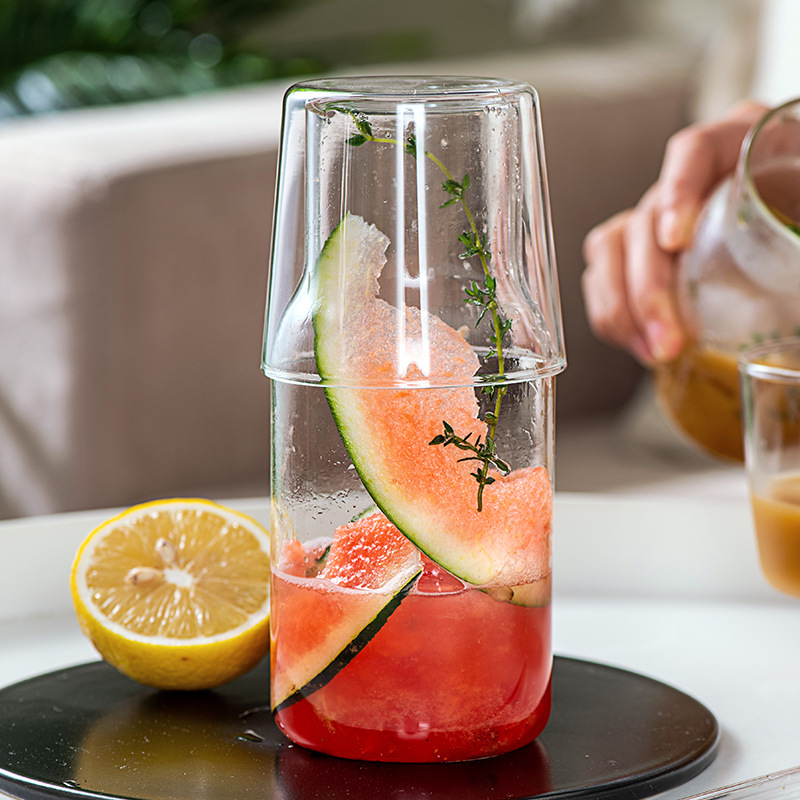 One Person Drinking Small Capacity Cold Kettle With Cup Set Transparent High Borosilicate Glass Cold Kettle Cup Set Juice Jug