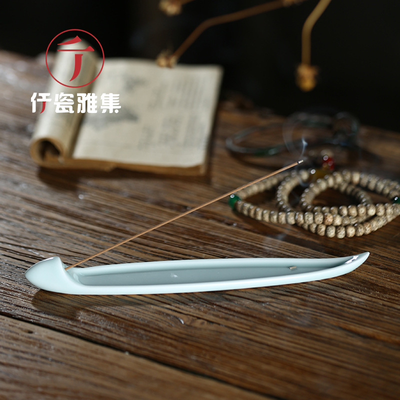 Qianci Yaji Chinese Style Agarwood Incense Stick Incense Holder Ceramic Boat-shaped Creative Incense Burner Ornaments Tea Ceremony Home
