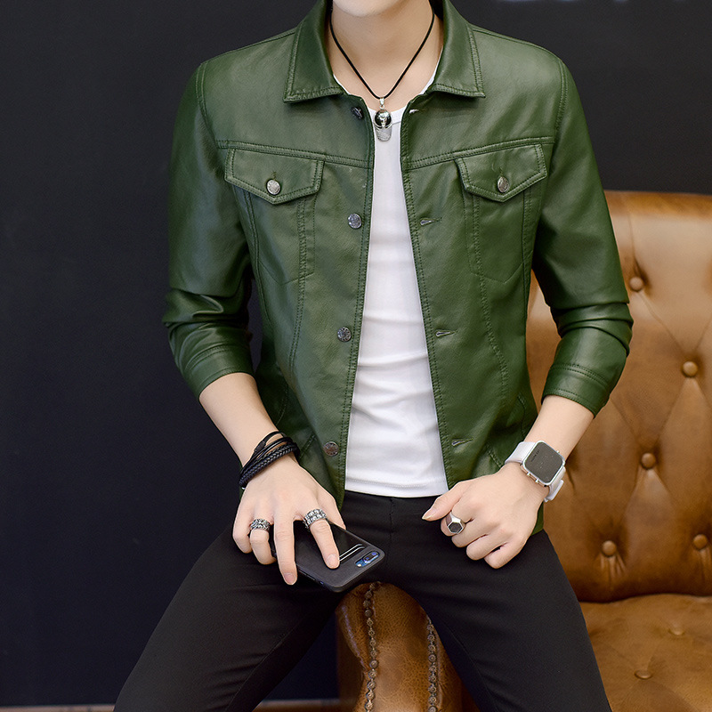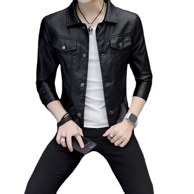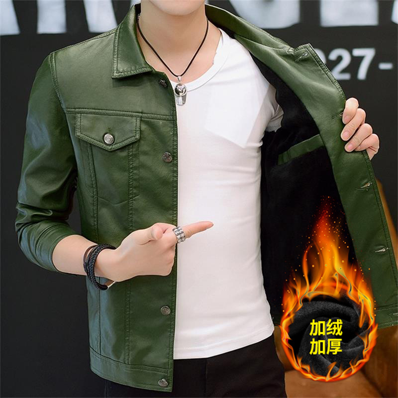 Leather Jacket For Men,Fashionable Autumn And Winter Velvet Warm Korean Style Slim Andy Men's Youth Handsome Lapel Pu Leather Jacket