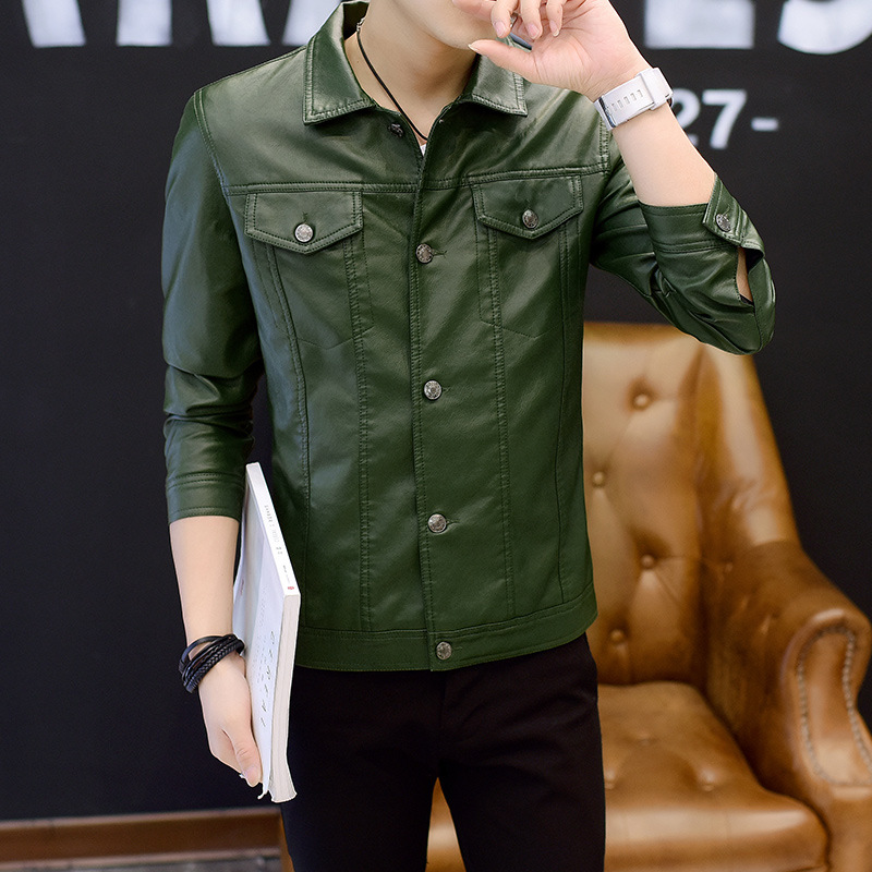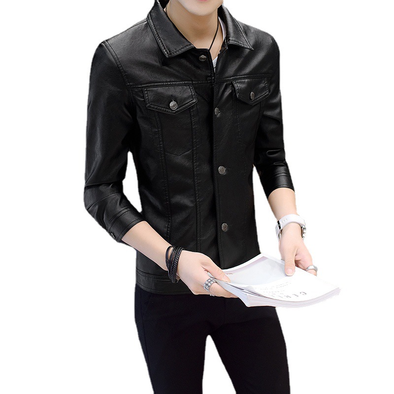 Autumn And Winter Thin Coat Pu Leather Jacket Men's Velvet Thickened Handsome Slim Korean Styley Mature Motorcycle Jacket