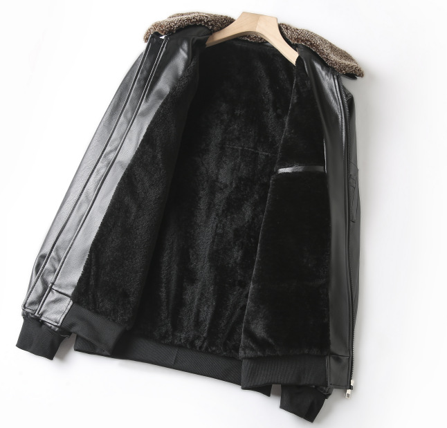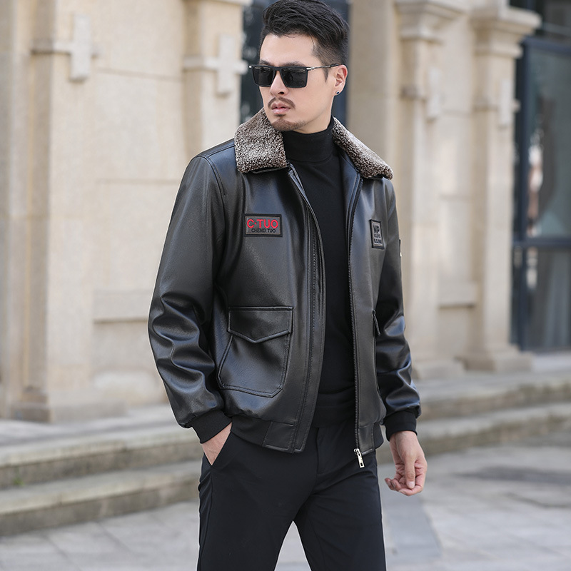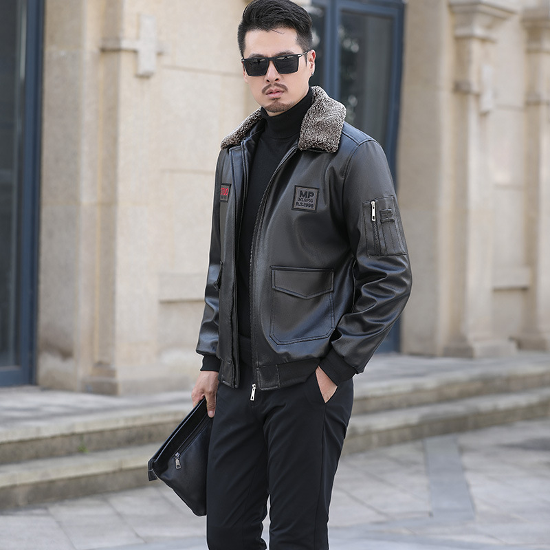 Pingyang Autumn And Winter Flight Suit Leather Printed Lapel Internet Celebrity Flight Leather Jacket Men's Warm Leather Jacket Men