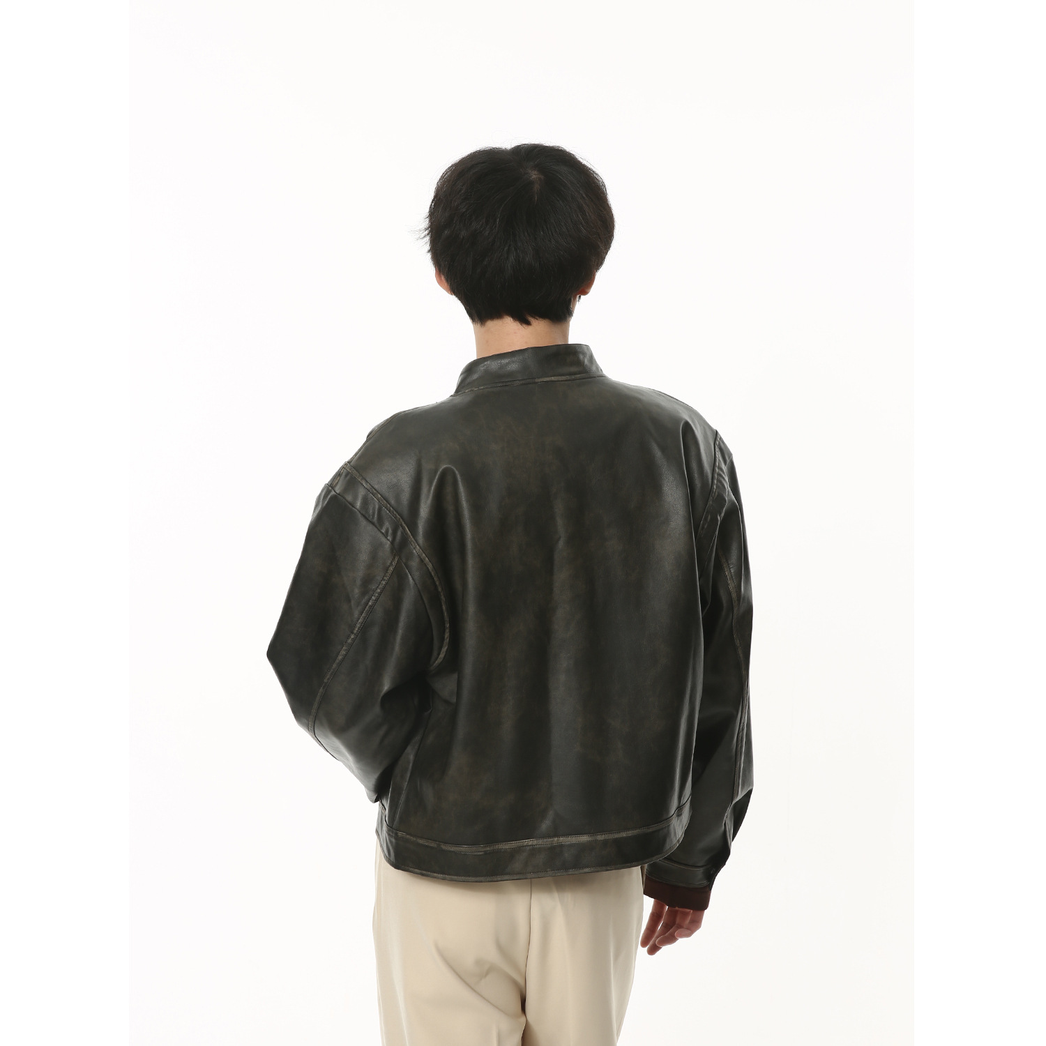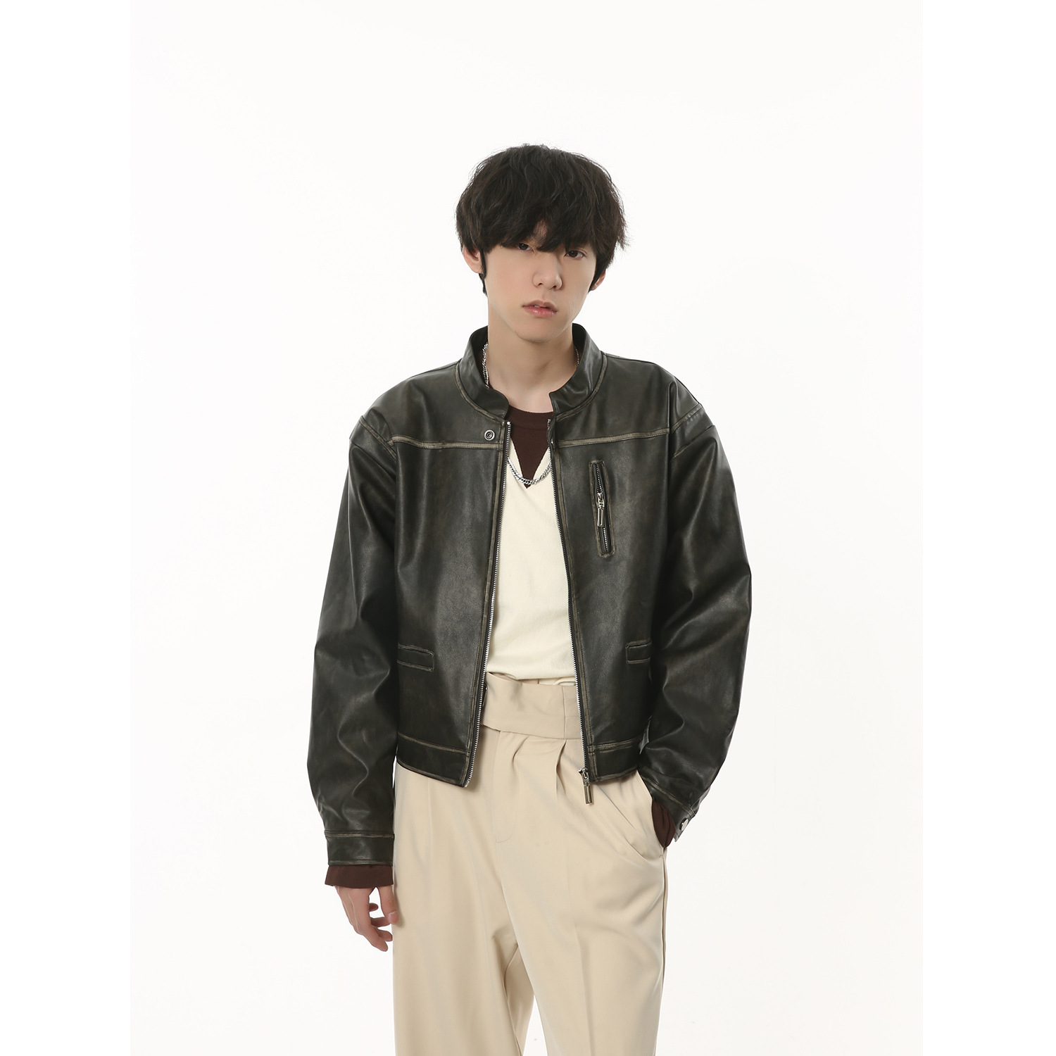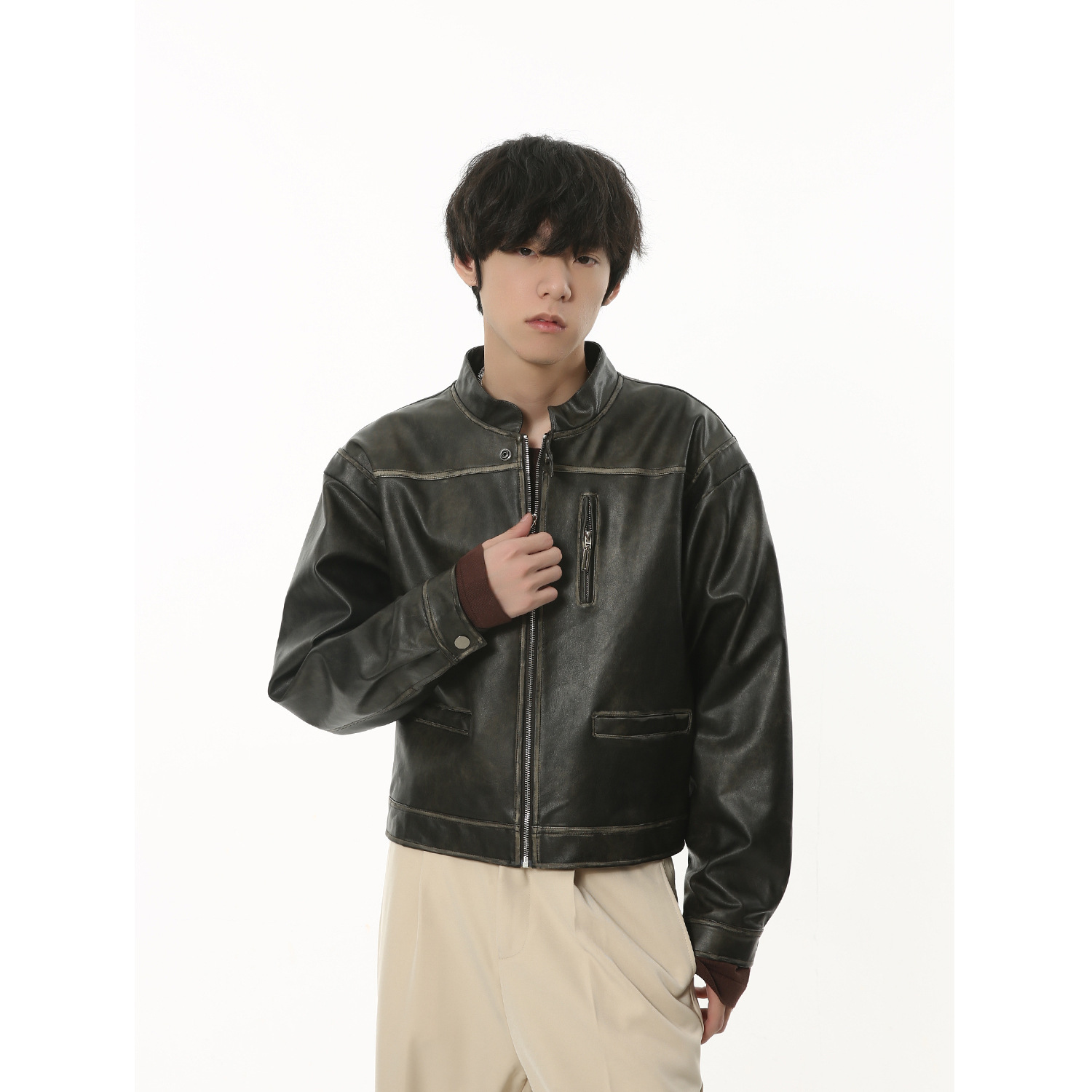 MTLCLOTHESMen's Clothing|Autumn Retro Motorcycle Leather Jacket Black Loose Short Jacket Pu Leathery