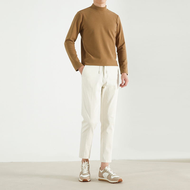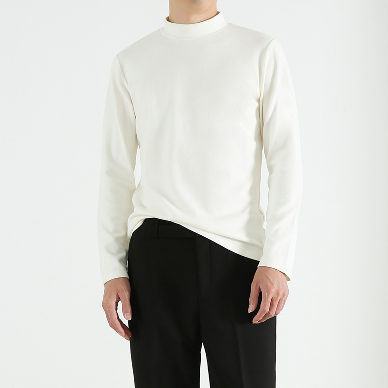 Heavyweight Autumn And Winter Base Layer Cotton Half Turtleneck Warm Brushed Basic Solid Color Long-sleeved T-shirt Inner Top For Men
