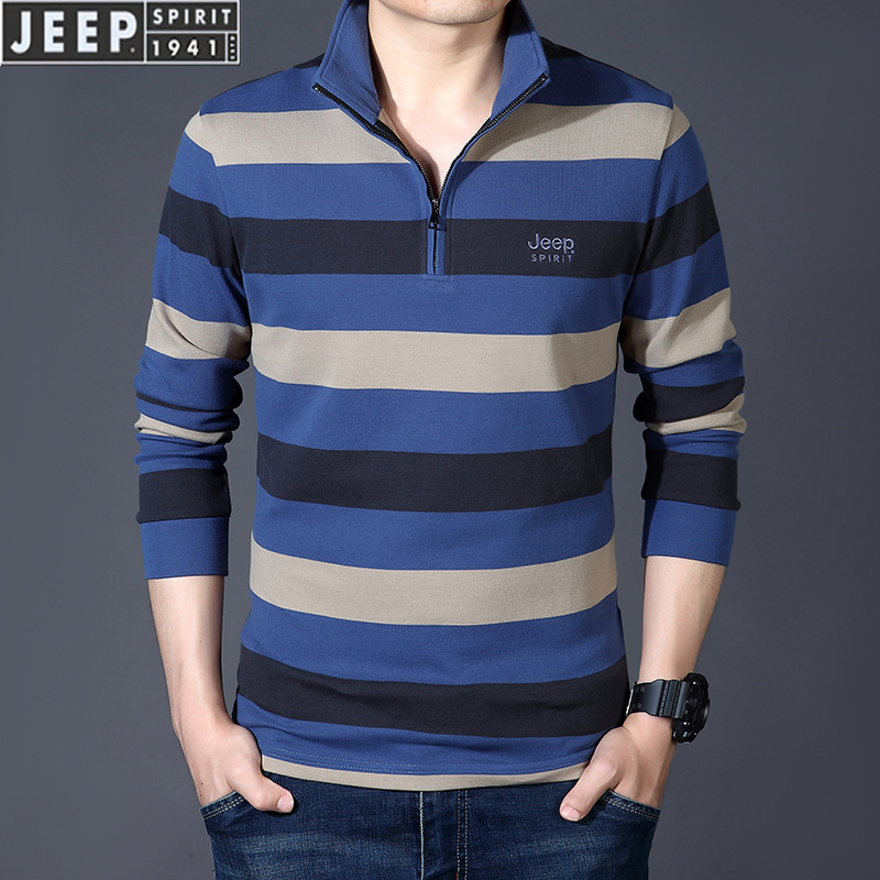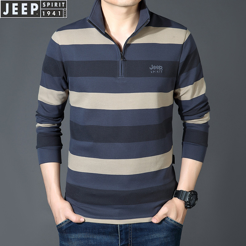 JEEPSPIRITLong-sleeved T-shirt Men's Tops Pure Cotton Fashion Casual Striped Shirt8015