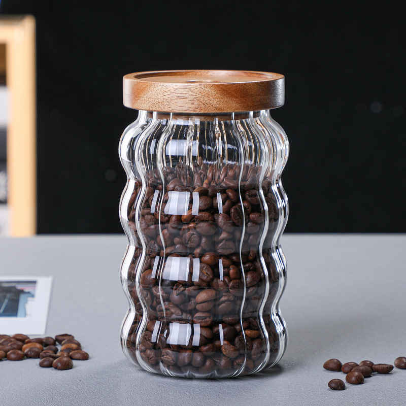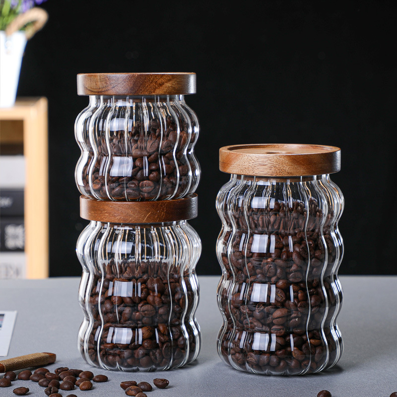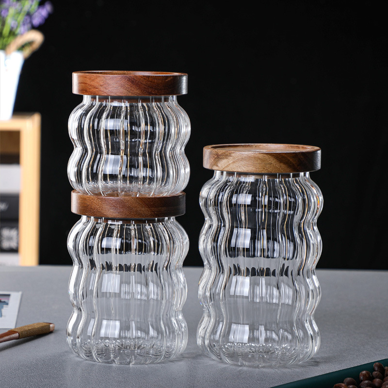Retro Japanese Household Borosilicate Glass Jar Sealed Jar Wooden Lid Kitchen Storage Jar Tea Jar Coffee Storage Jar