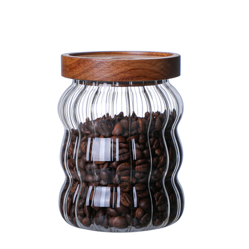Acacia Wood Cover Glass Storage Jar Transparent Storage Storage Jar Food Coffee Bean Tea Sealed Jar