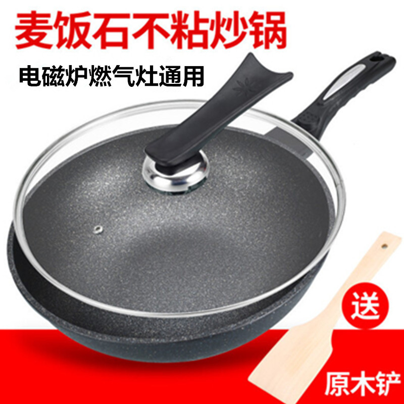 Korean Wheat Stone Wok,Aluminum Alloy Non-stick Wok,Oil Fume Wok,Induction Cooker,Universal Wok,Cooking Spoon
