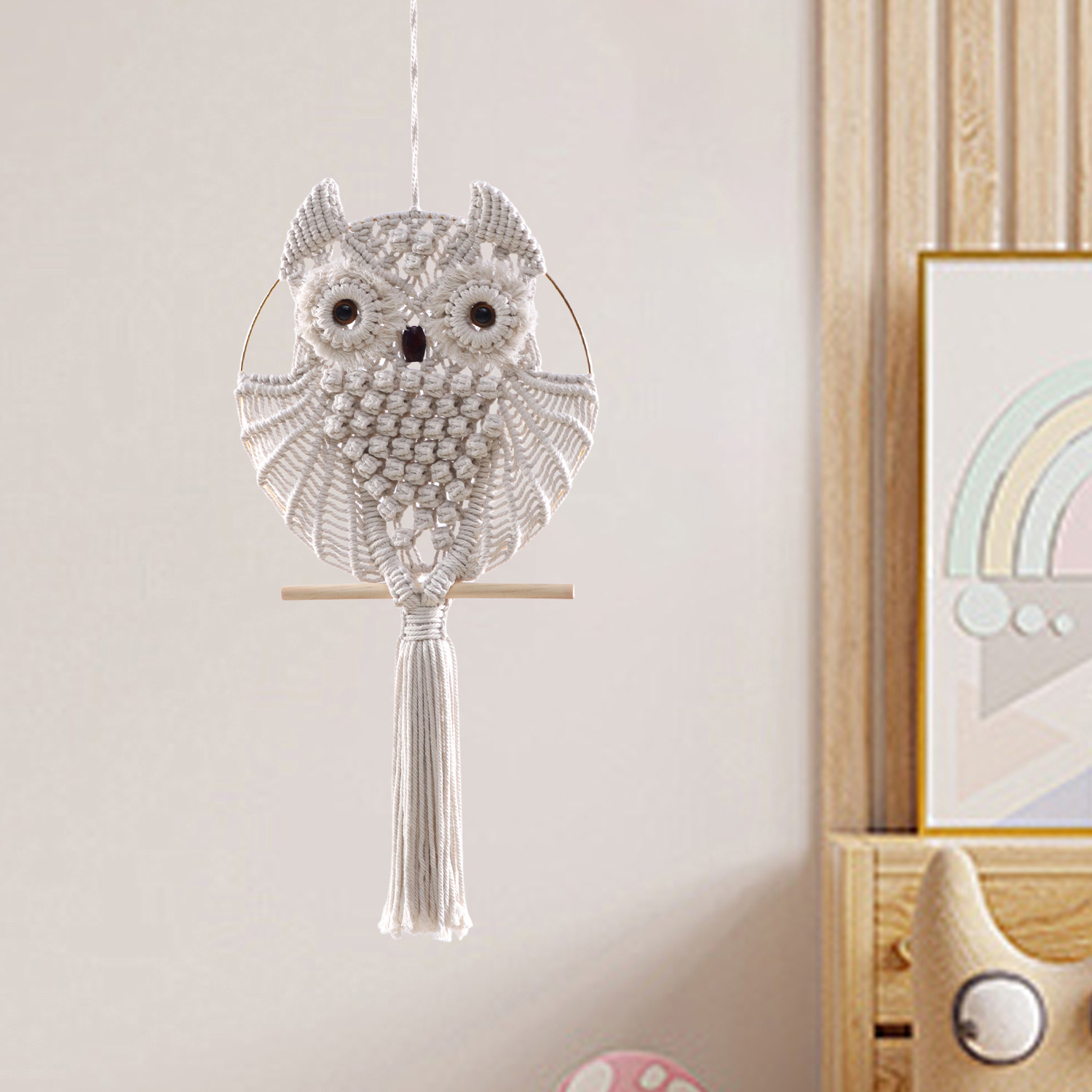 Owl Pendant Hanging Lace Wall Hanging Tapestry Handwoven Boho Art Decoration