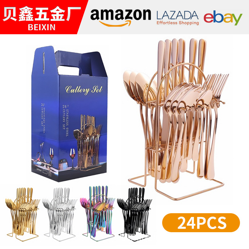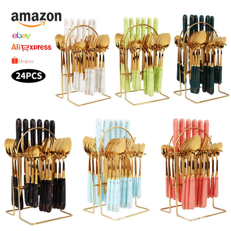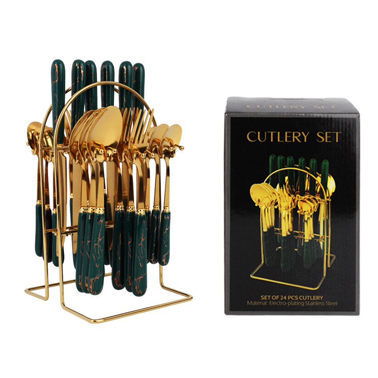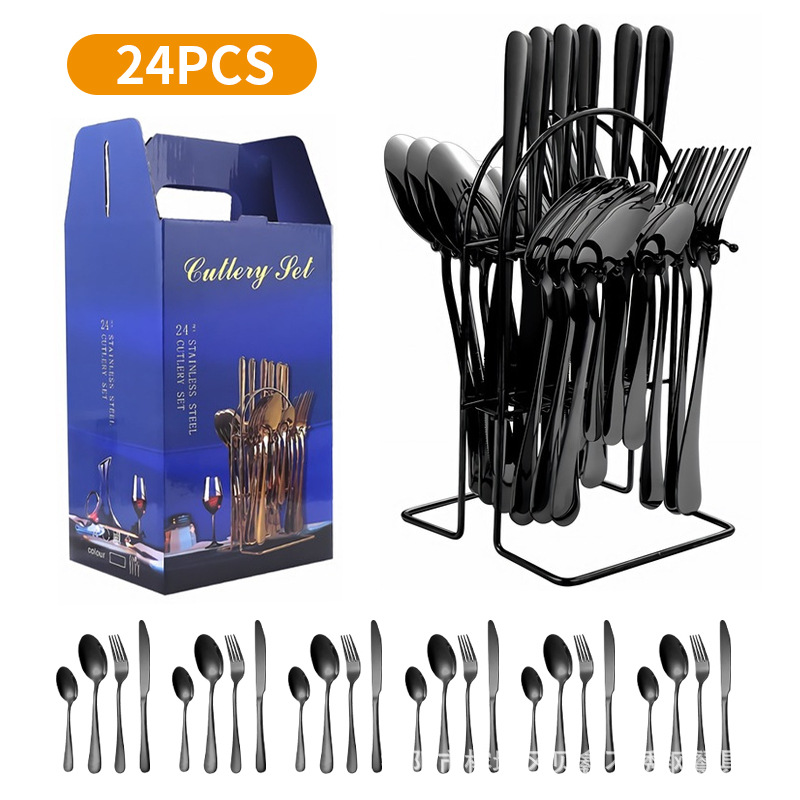 Stainless Steel Tableware24-piece Set1010 Ceramic Handle Western Food Knife,Fork And Spoon Tableware Hanger Storage Box