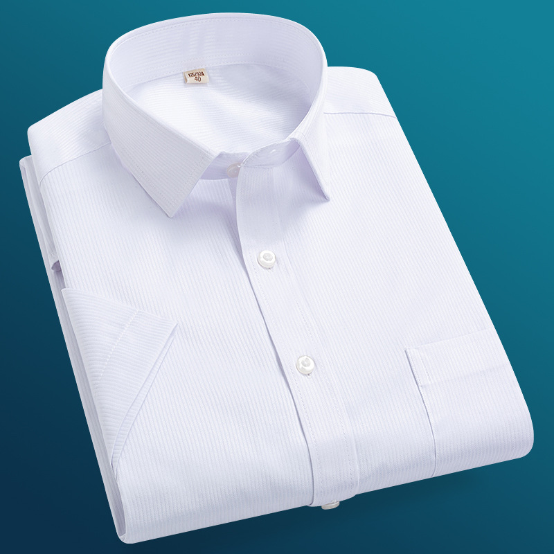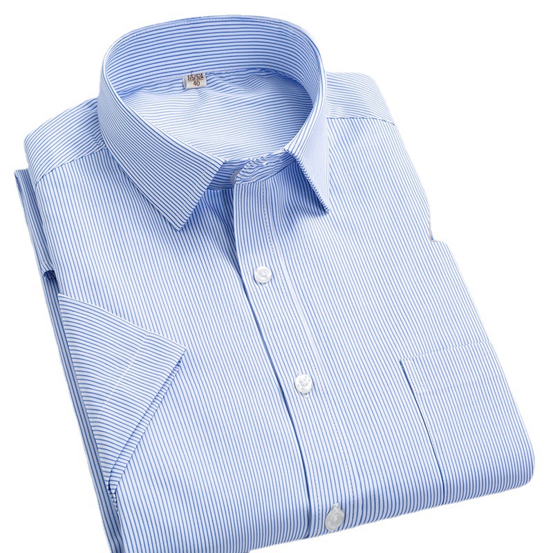 Men's Business Long-Short Sleeve Striped Casual Shirt Men's Fashionable Slim-fitting Comfortable Iron-Free Handsome Men's Clothing