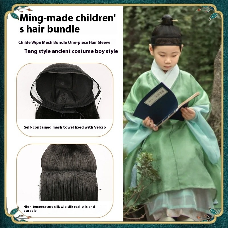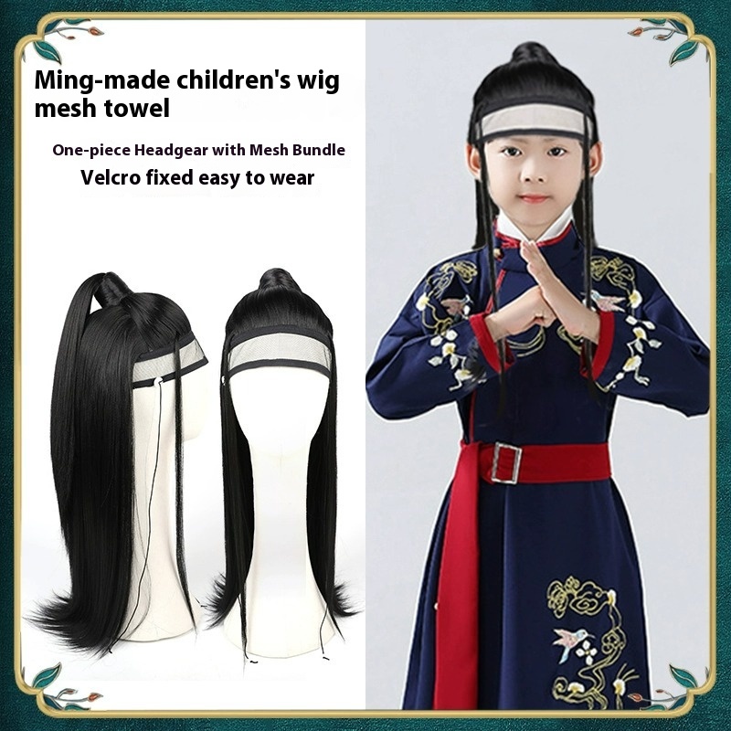 Hanfu All-in-one Children's Wig, Ming-style Wig For Men And Women, Mesh Scarf, Scholar's Forehead Wiping, Ancient Costume And Hair Bundle