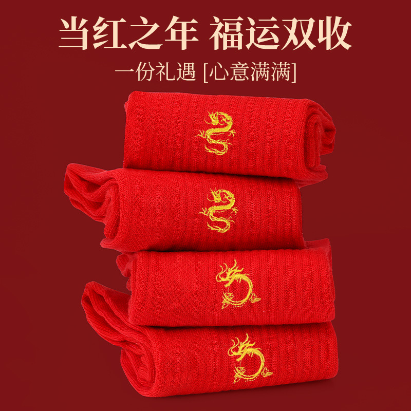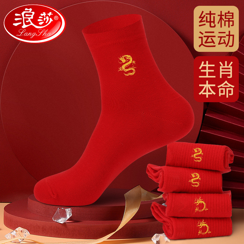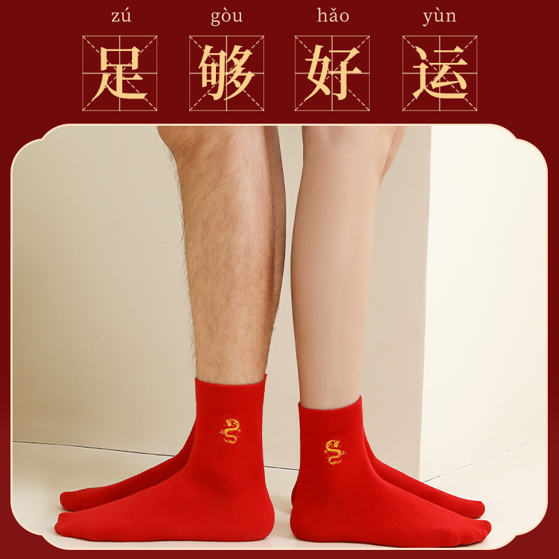 Langsha's Red Socks For Women In The Year Of The Dragon,Pure Cotton Autumn And Winter Mid-calf Socks For Wedding Couples,Red Men's Gifts