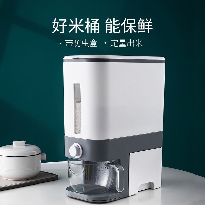 Japanese-style Rice Bucket Sealed Rice Cylinder Push-type Moisture-proof Andect-proof Rice Storage Box Kitchen Metering10 LAutomatic Rice Bucket