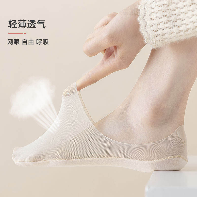 Boat Socks For Women In Summer,Ultra-thin Ice Silk Mesh Socks For Women,Cotton Bottom,Shallow Mouth,Invisible Silicone,Non-slip,Non-falling