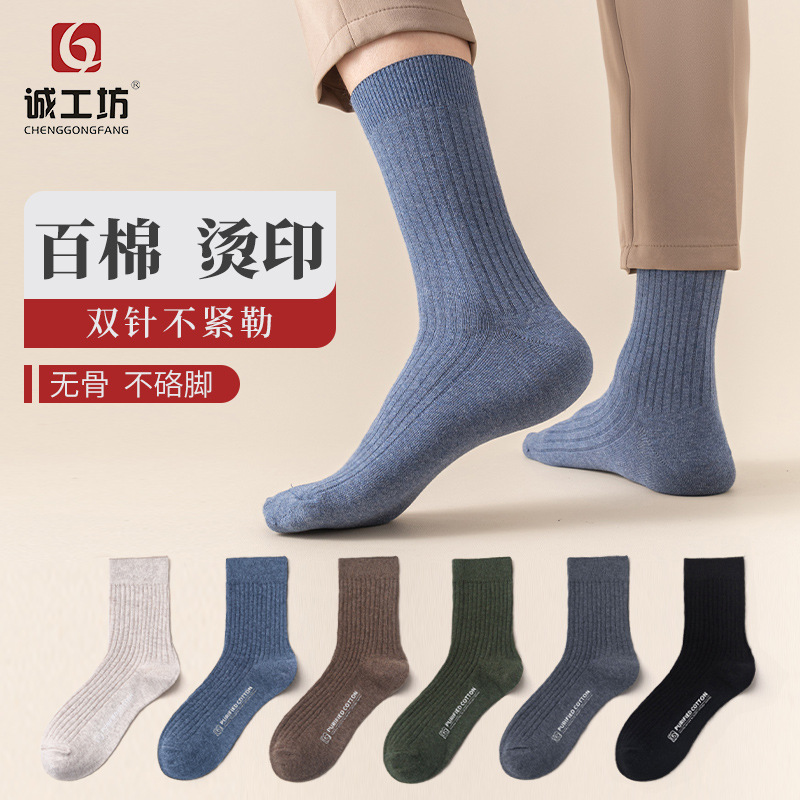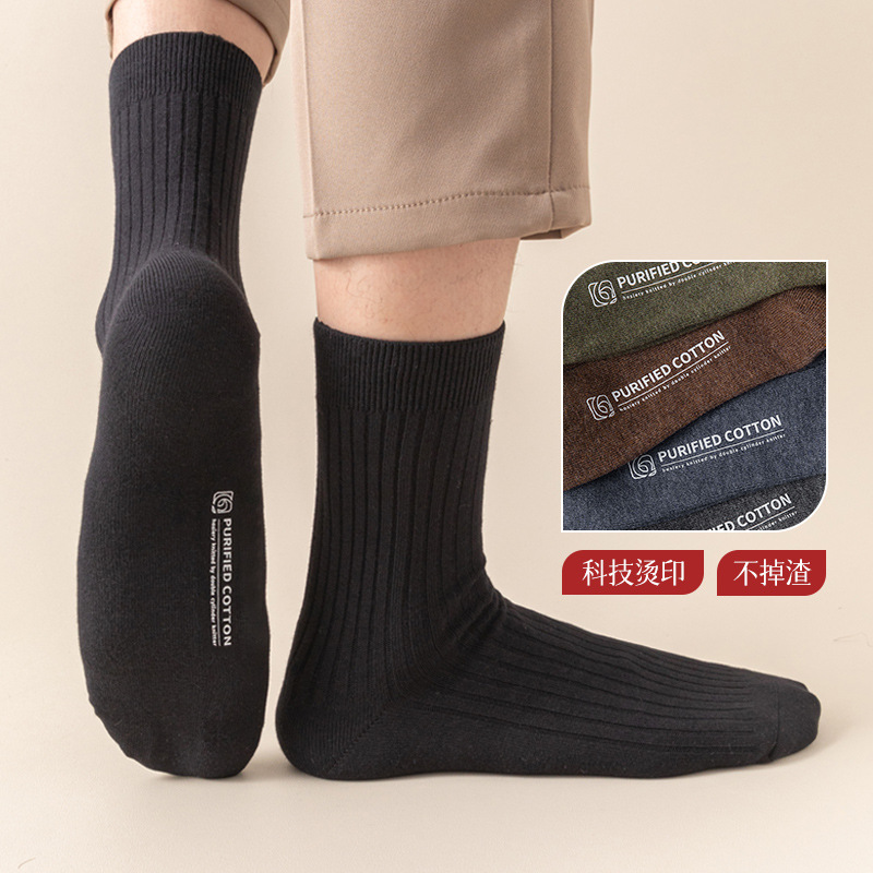 Men's Pure Cotton Anti-odor Socks Autumn And Winter Mid-calf Cotton Socks Combed Cotton Winter Sweat-absorbent Double-needle Thickened Men's Socks
