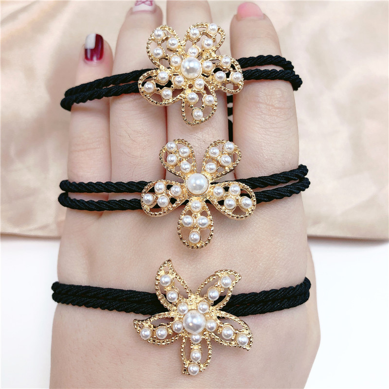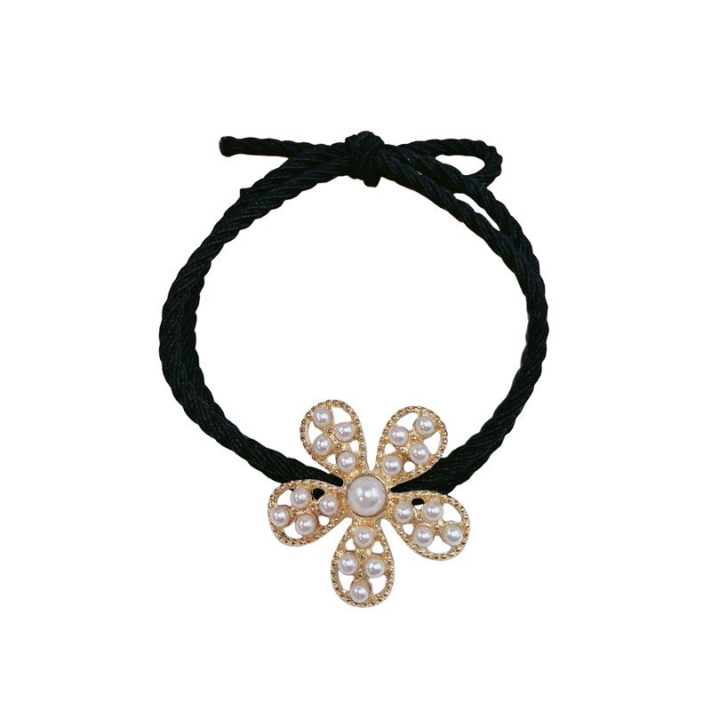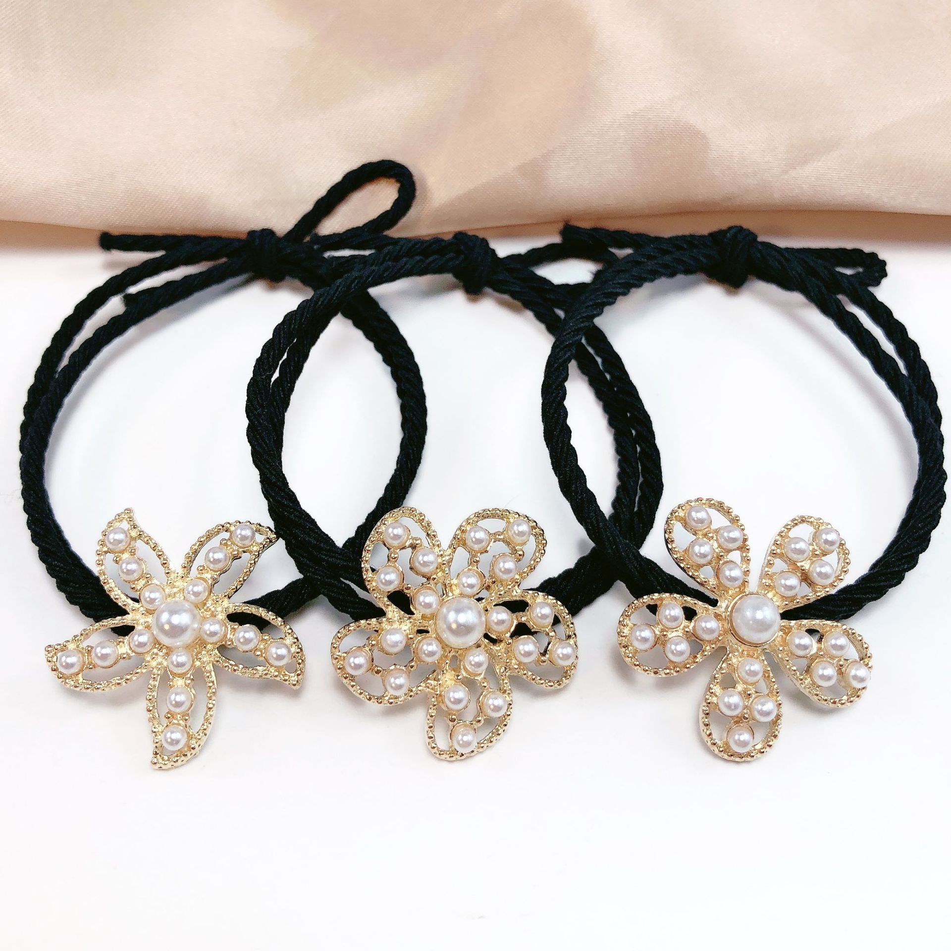 Korean Version Of Sweet Temperament Simple Hollow Pearl Flower Metal Hair Ring Hair Accessories Hair Rope Rubber Band Female Headband