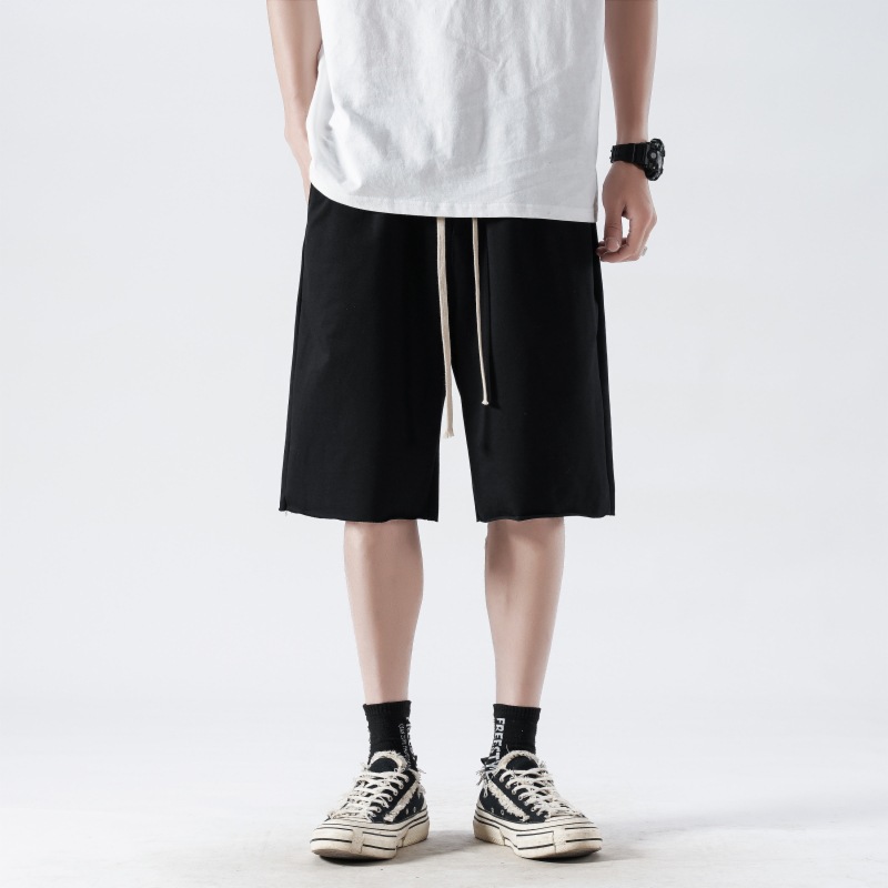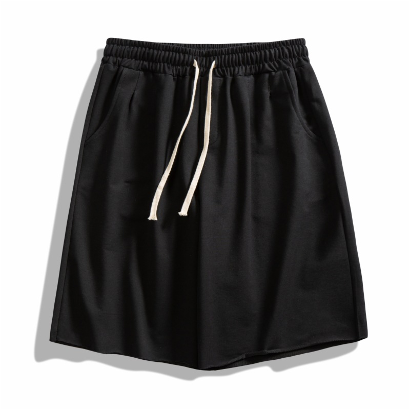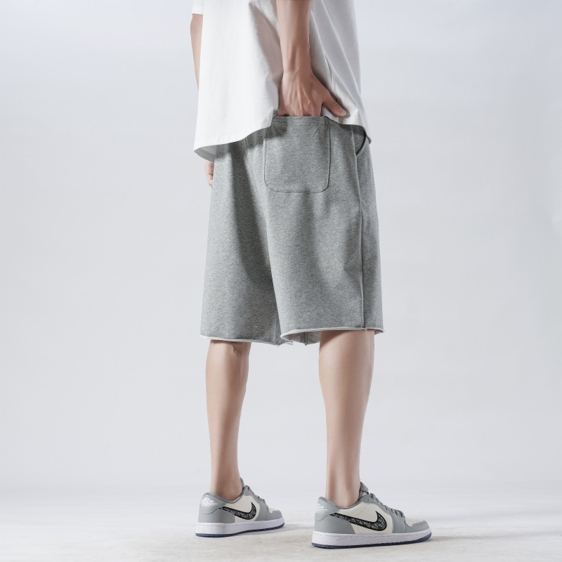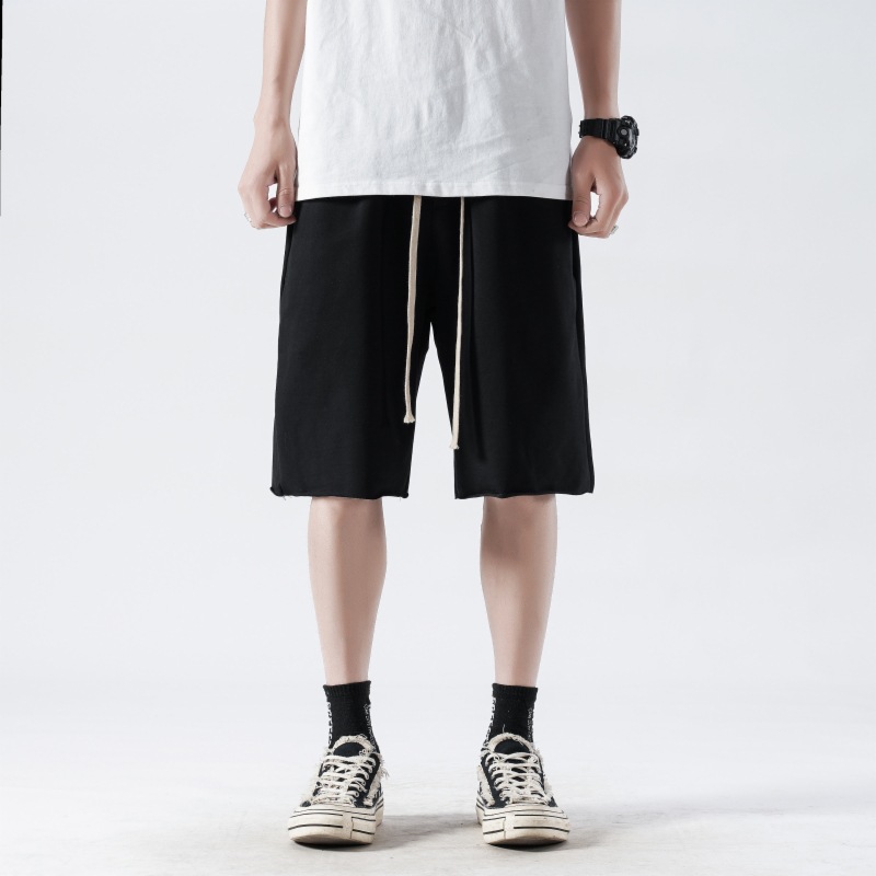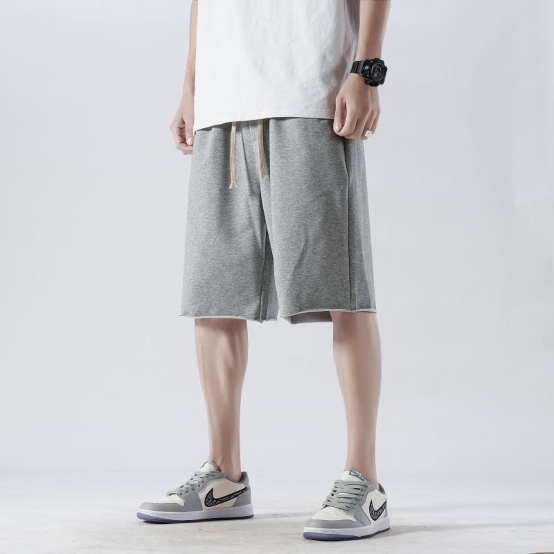 240g Cotton Edgeless Rolled Hem Sweatpants Men's Summer Korean Style Youth Casual Shorts Micro-elastic Drawstring Sweatpants