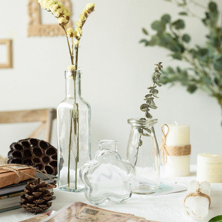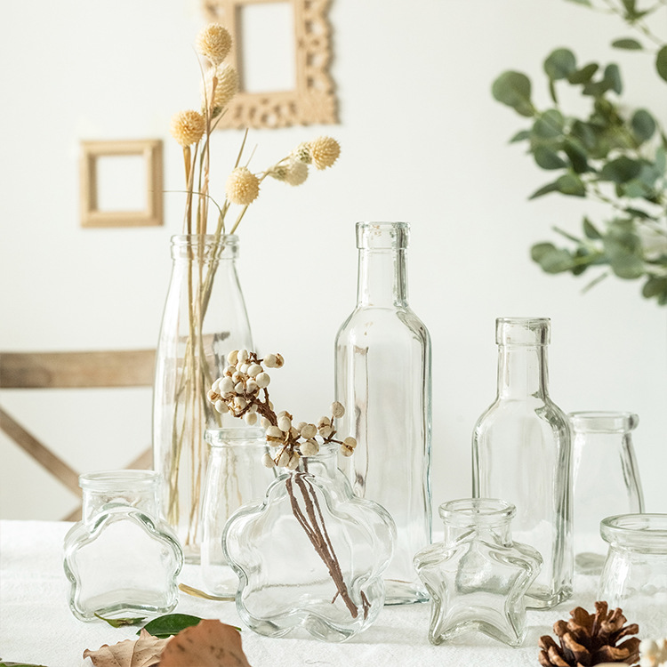 Vase Ornaments Living Room Flower Arrangement Dried Flowers Small Nordic Wind Glass Transparent Water Pothos Desktop Bedroom Decoration