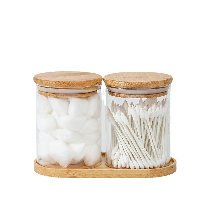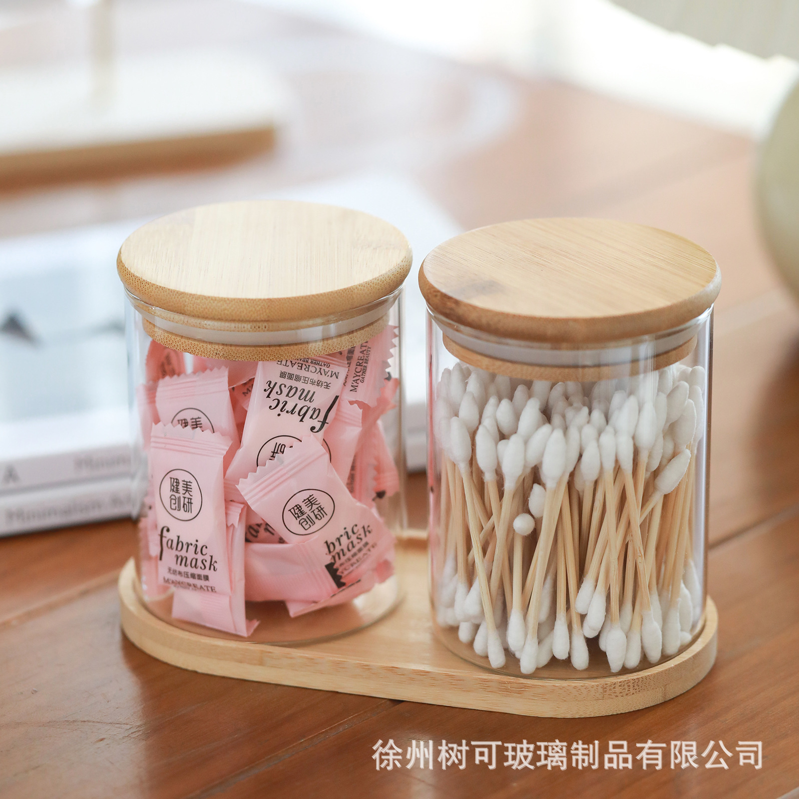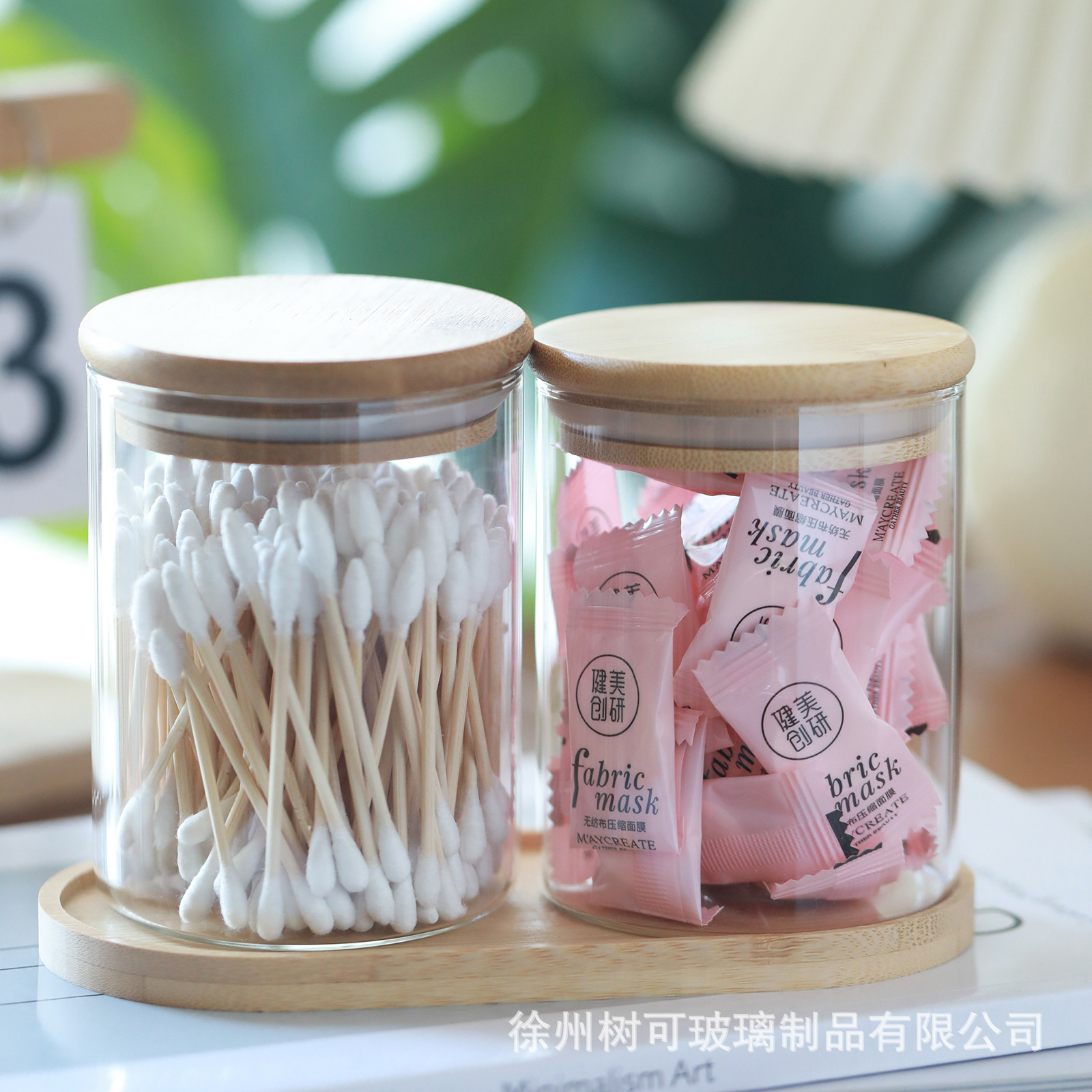 High Borosilicate Glass Sealed Jar Transparent Cotton Swab Makeup Remover Cotton Storage Storage Jar Set