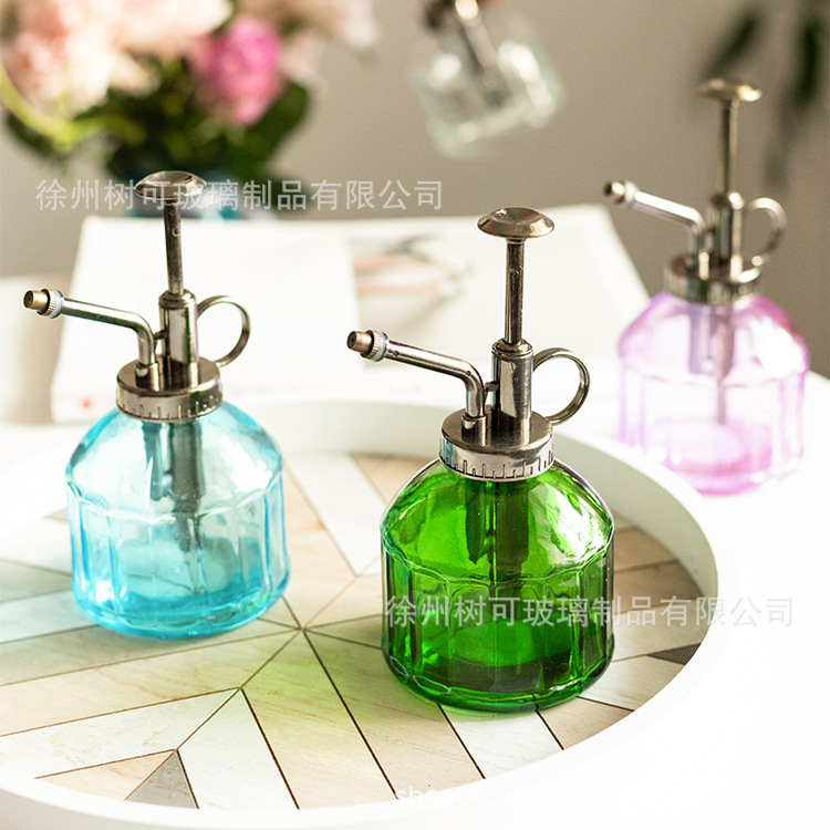 Transparent Small Glass Watering Can Grid Color Household Succulent Flower Watering Tool Sprayer